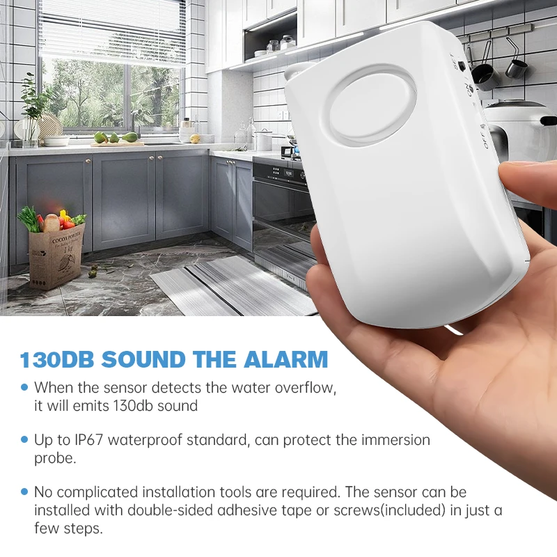 * A simple and effective device that prevents water damage. It alarms when the sensor gets a direct contact with the water,