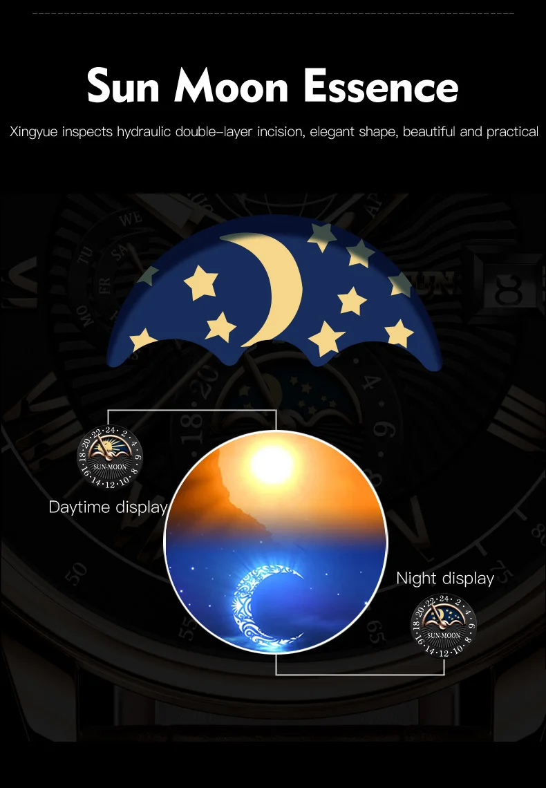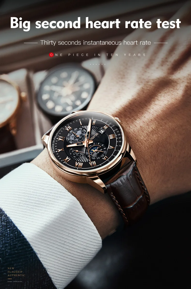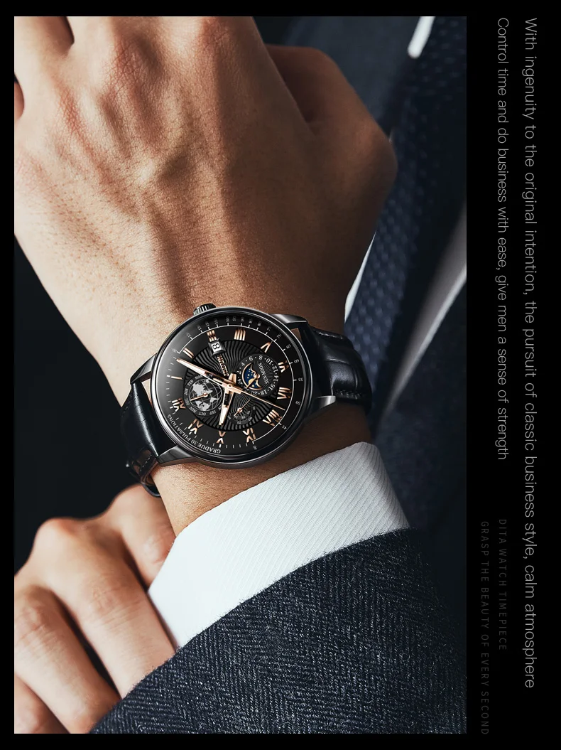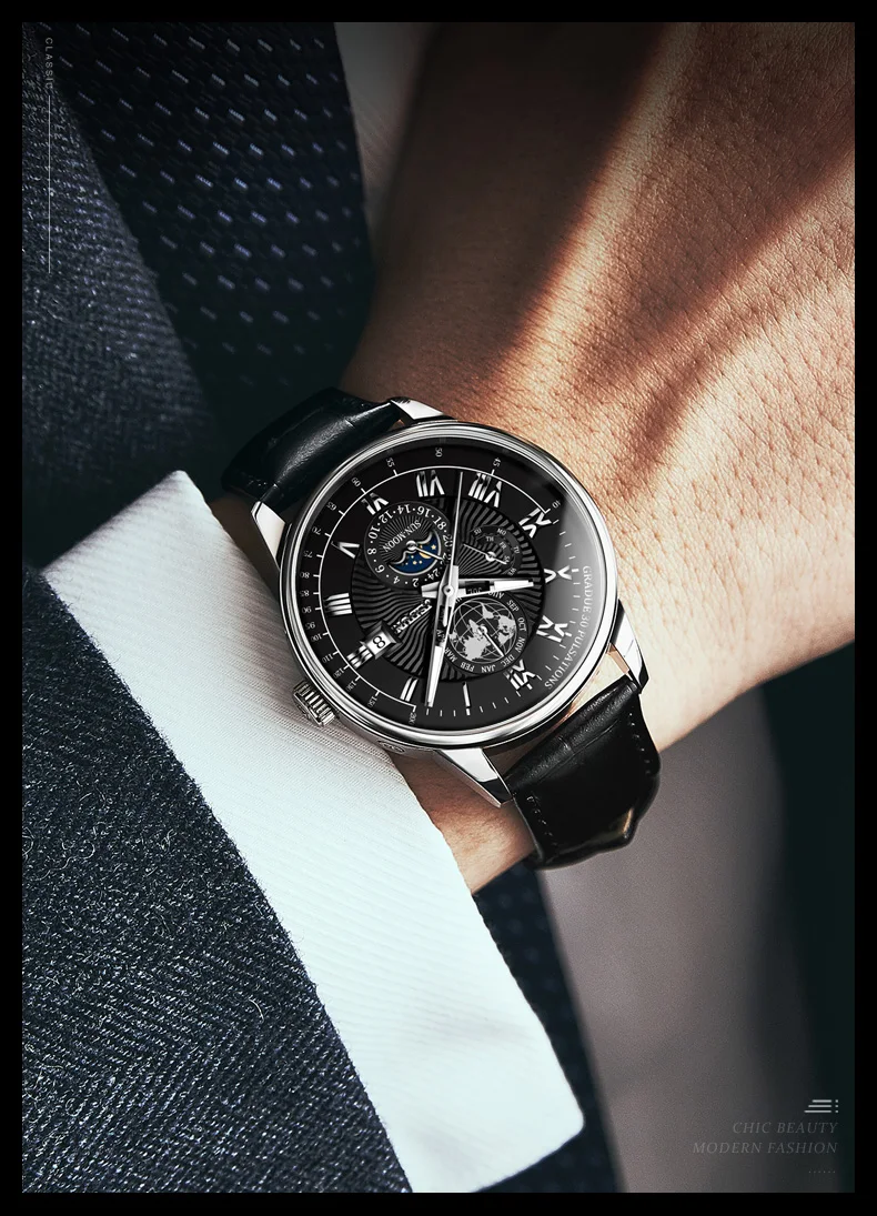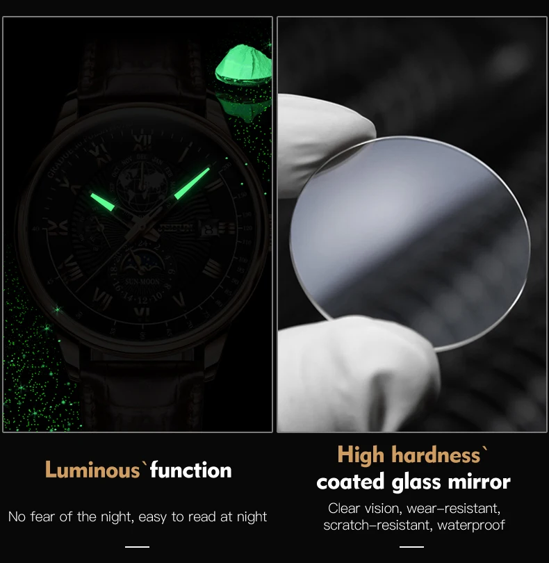JSDUN 8909 Automatic Watch for Men Business Leather Watch Moon phase Multifunctional Waterproof Stainless steel Men's Watches