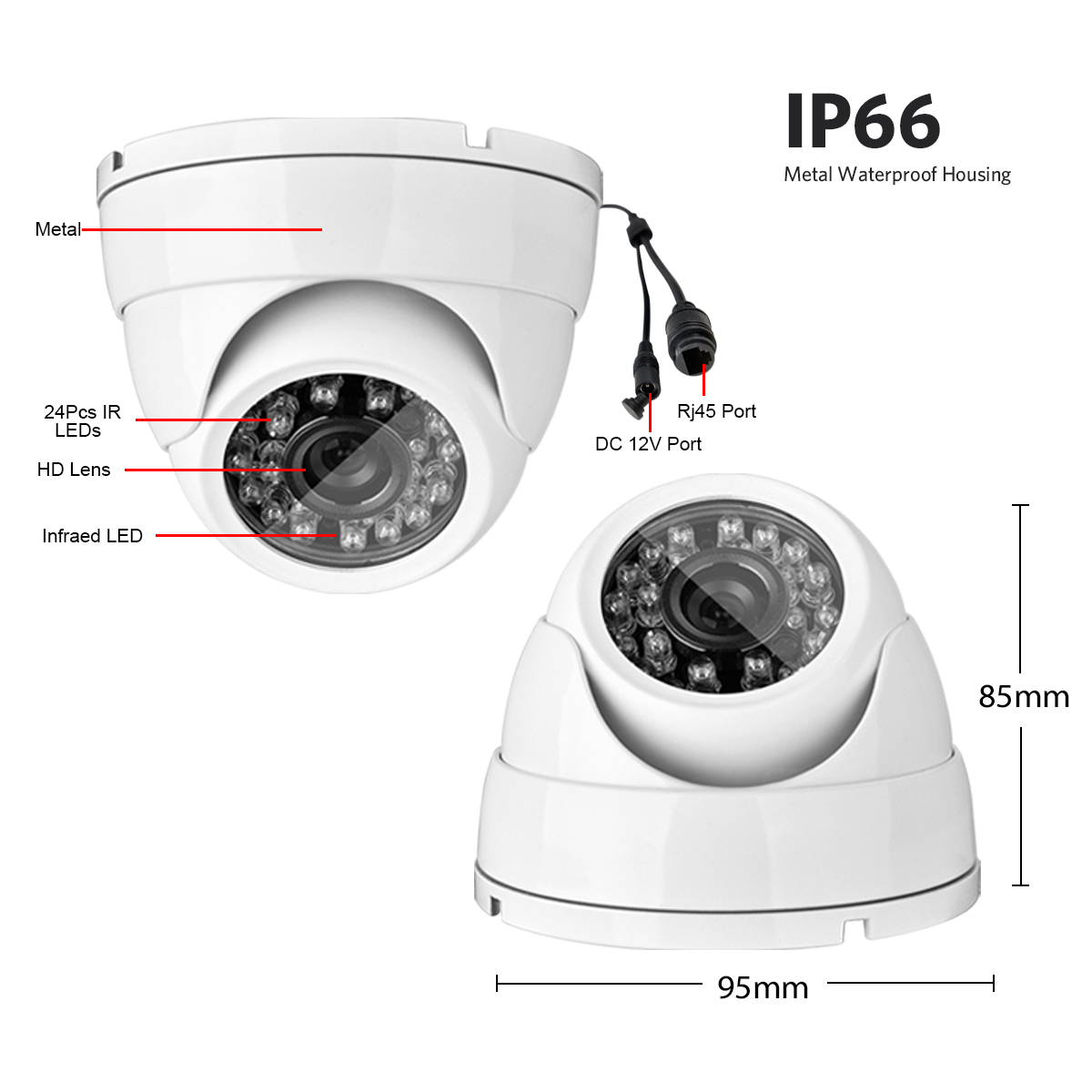 Number of IR LEDs: 24Pcs IR light LEDs, 20-30meter Night Vision