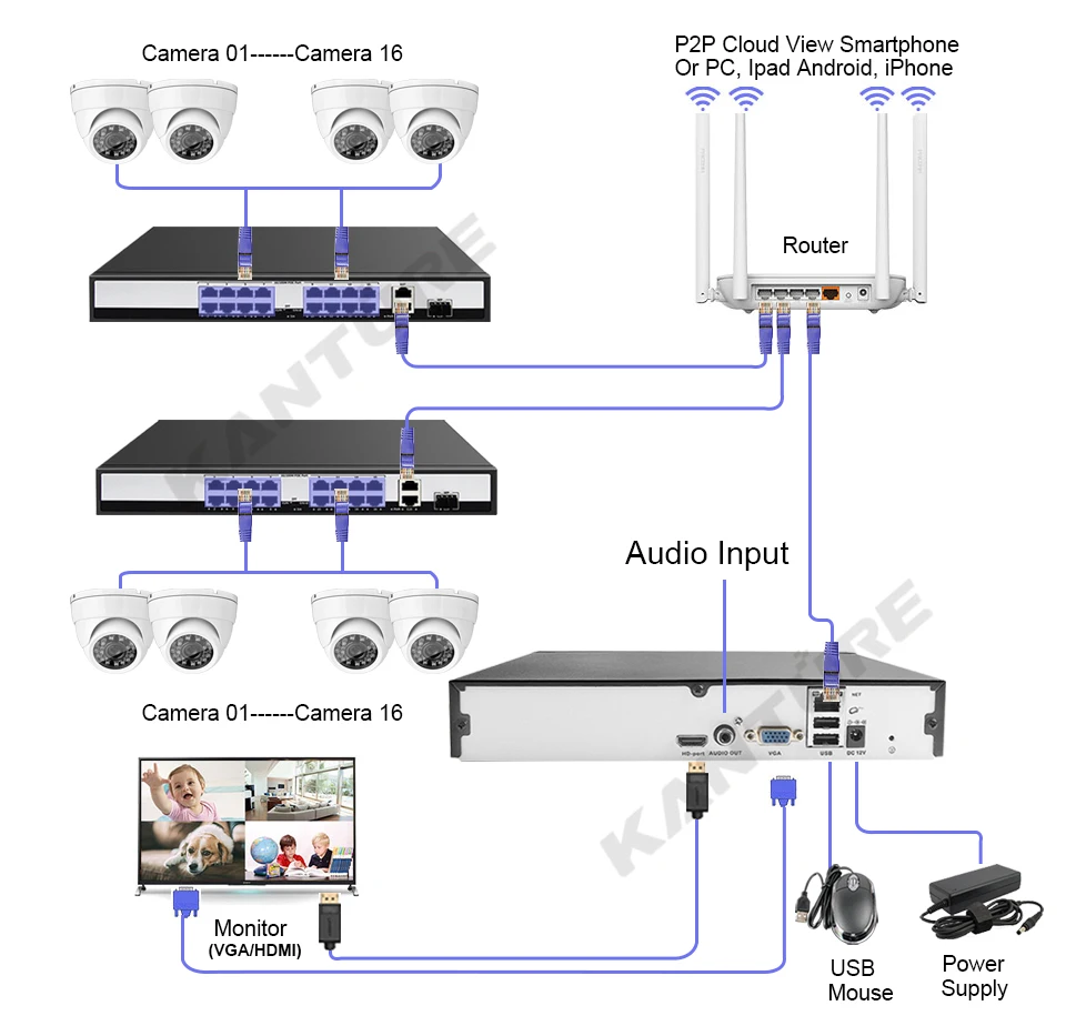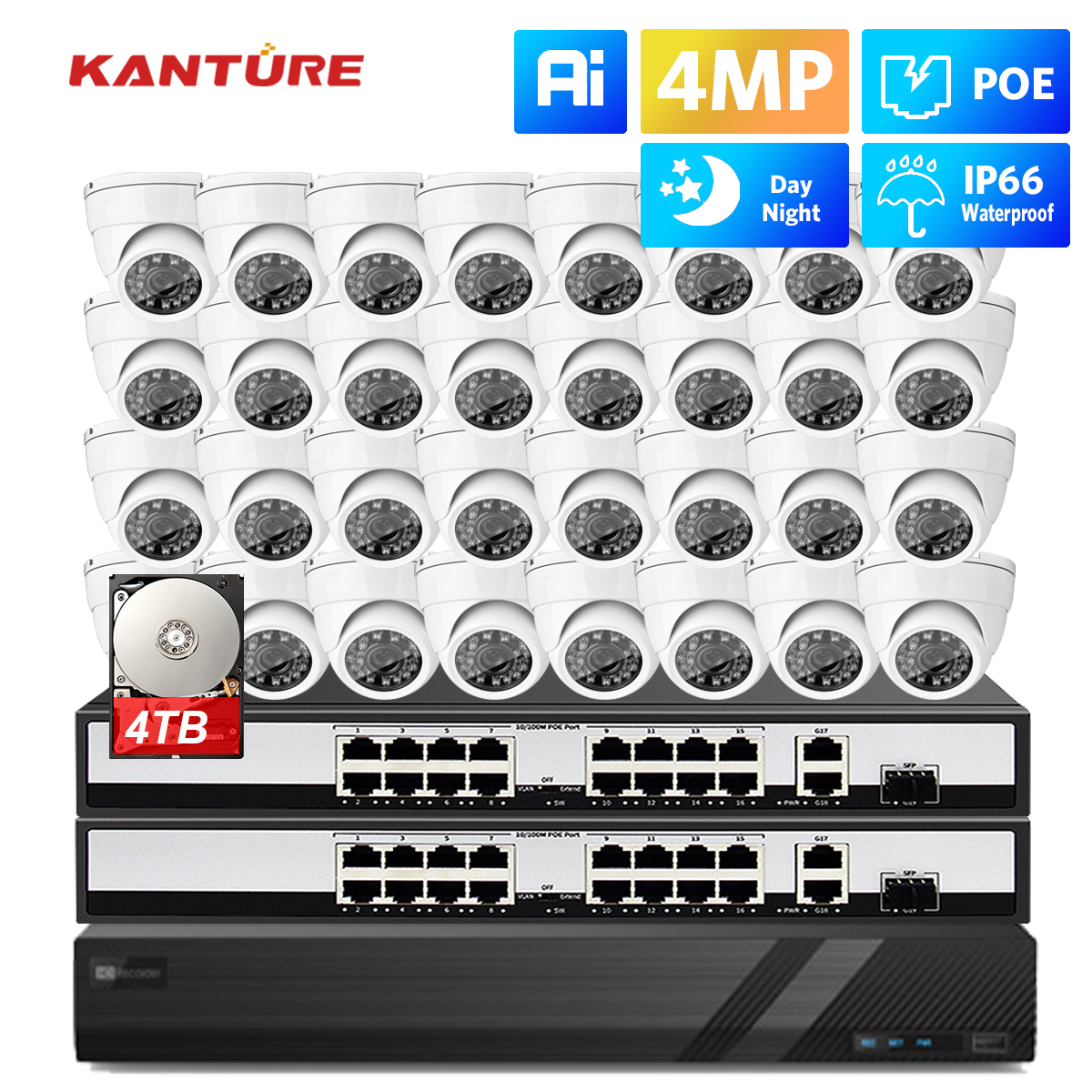 KANTURE 32CH 4MP CCTV Security Camera System Smart AI Human Detected 2K Metal Indoor Outdoor CCTV Video Surveillance Kit P2P