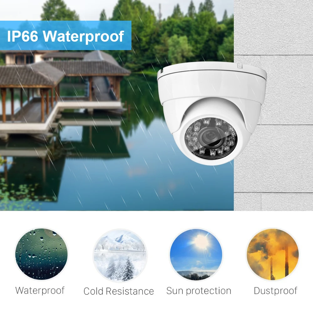 KANTURE surveillance camera has a solid aluminum body and housing,with an IP66 waterproof rating. So you can feel free to install it outdoor, like in your garage, backyard, or anywhere else. It can stand harsh weather conditions, including rain, snow, intense cold and heat(-40℃~50℃).