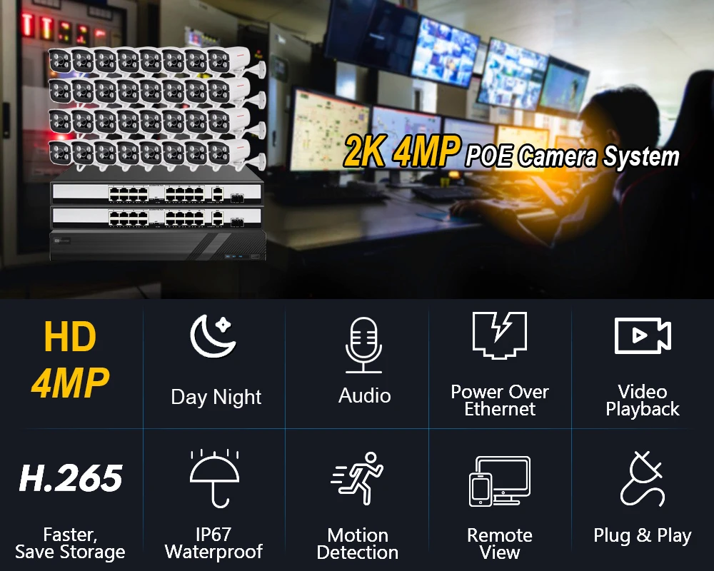 24/32*H.265 2K 4MP Audio Day Night Waterproof Outdoor POE camera