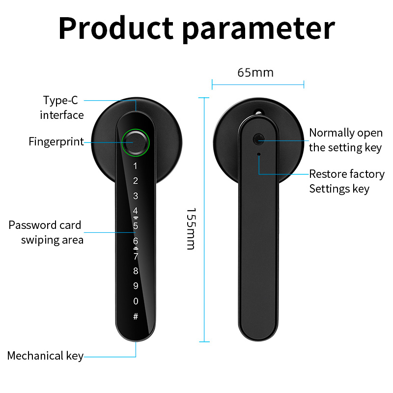 4. Mechanical keys and emergency power supply (USB) can be used when the door lock is out of power.