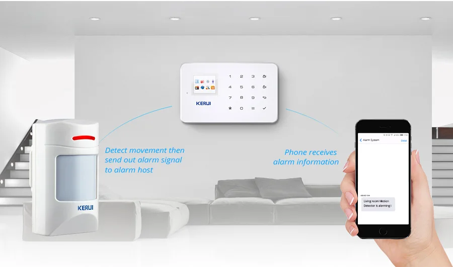 The detector will detect movement of human auotomatically when intruder pass through the detector area,and it will send out alarm signal to alarm host if there is movement.