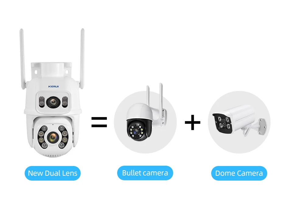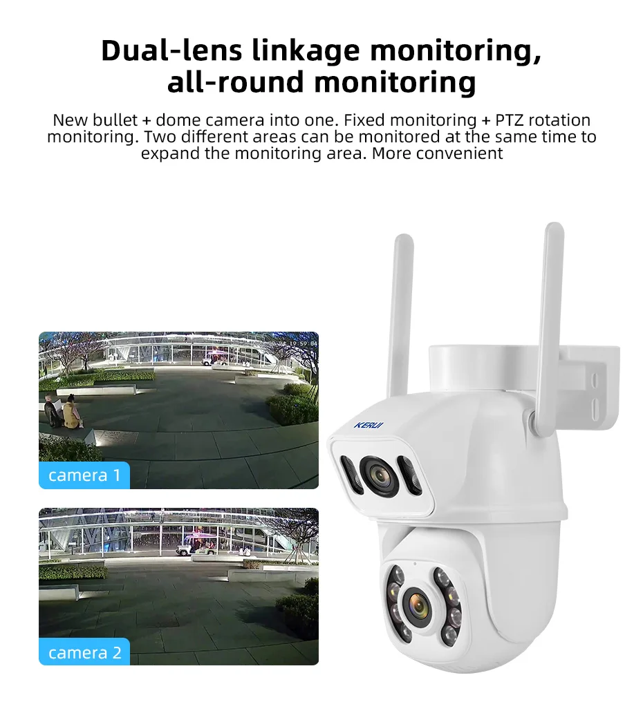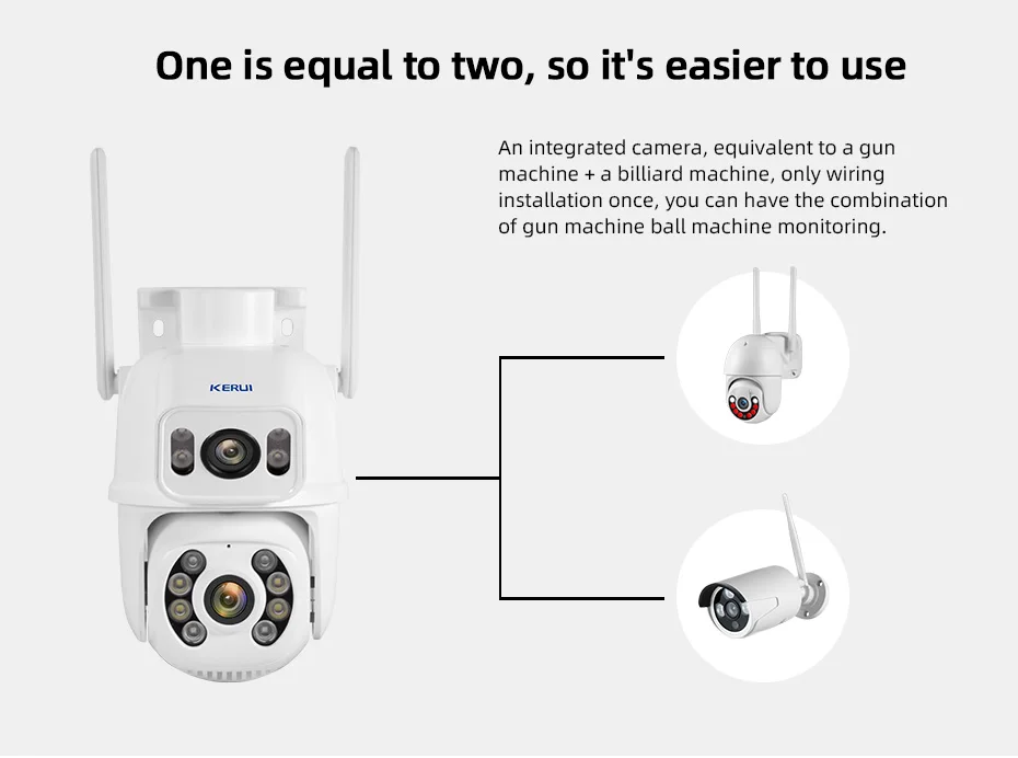 The 2-in-1 camera has the advantages of both cameras and can be used to monitor different areas separately.
