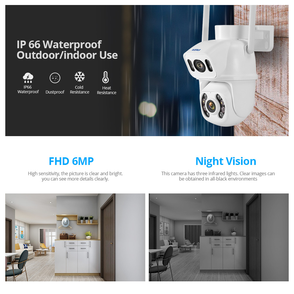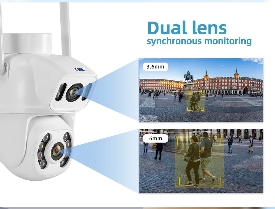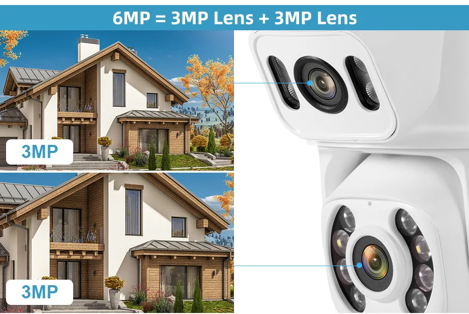 6MP = 3MP Lens + 3MP Lens,Gun camera plus ball camera 2 in 1, clear and detailed picture.