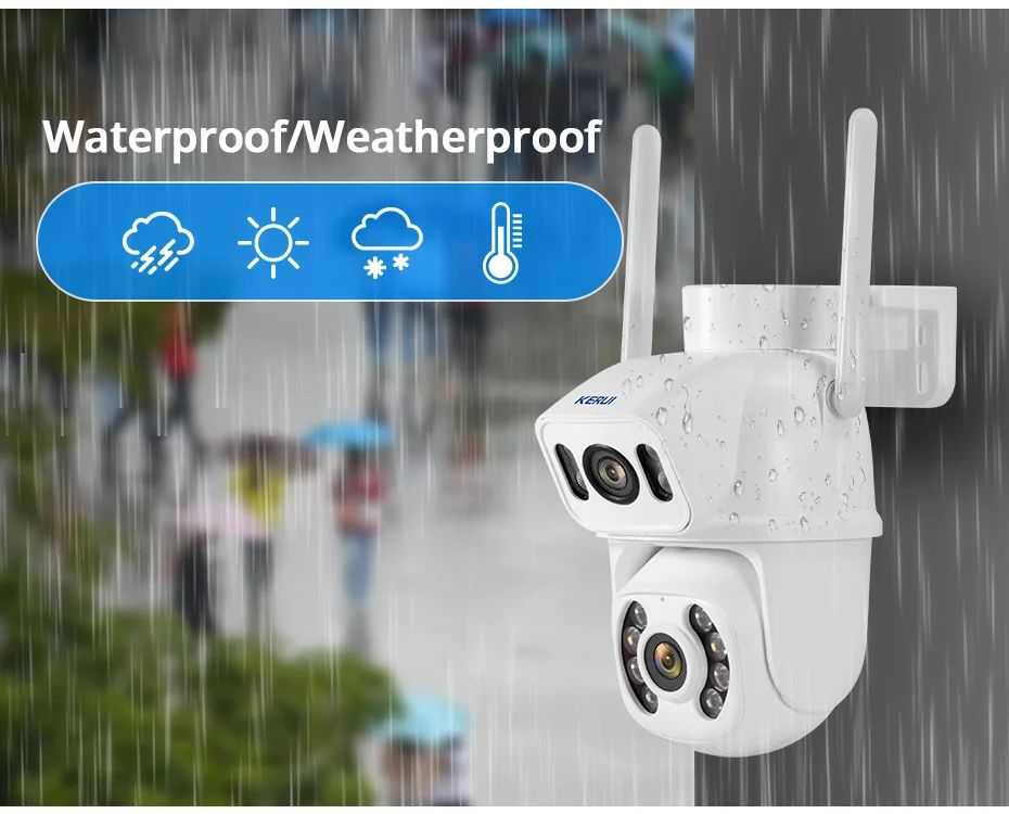 Camera waterproof, dustproof, lightningproof, snowproof, -10°C-30°C.