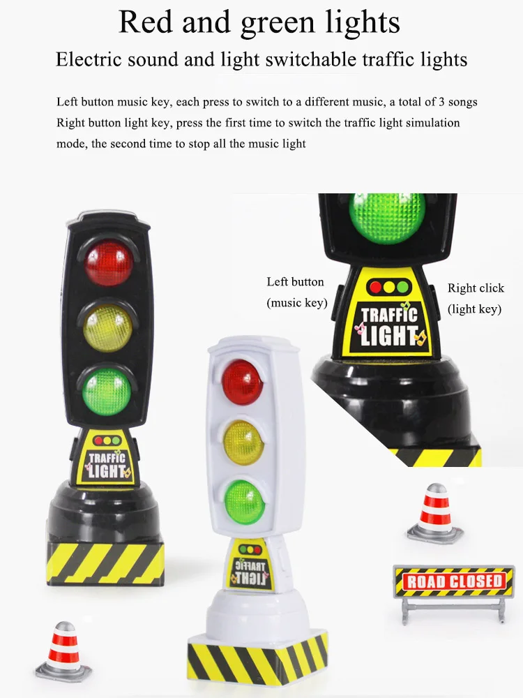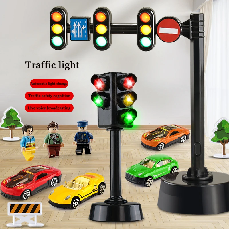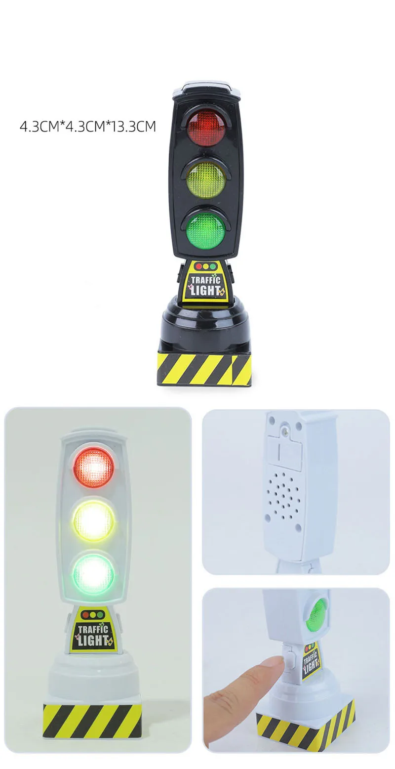 Kids Toys Safety Education Traffic Light Toy Model Stop Lights Block Scene Road Sign Toys for Kids Boys Model Puzzle Accessories