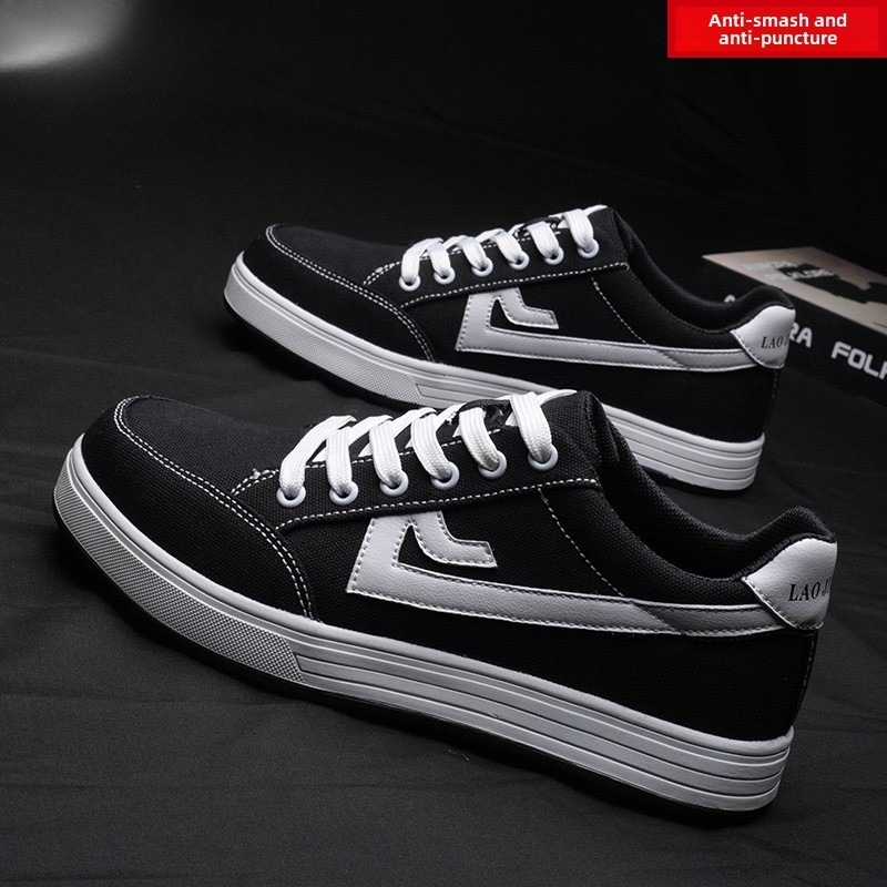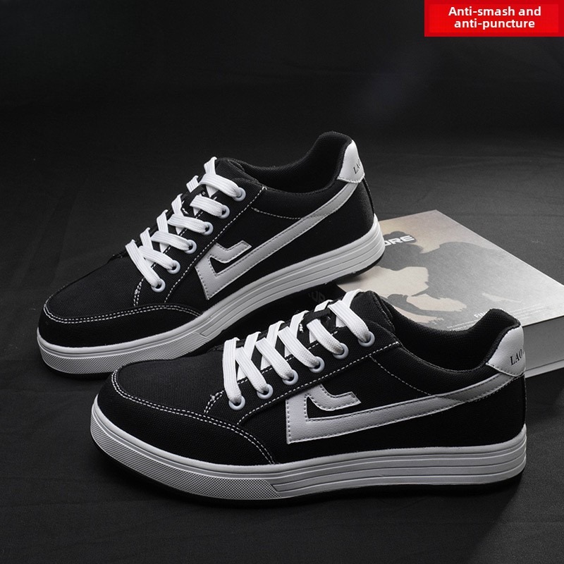 Labor protection shoes with steel toe caps, anti smashing and anti rubber soles, canvas breathable and durable protection