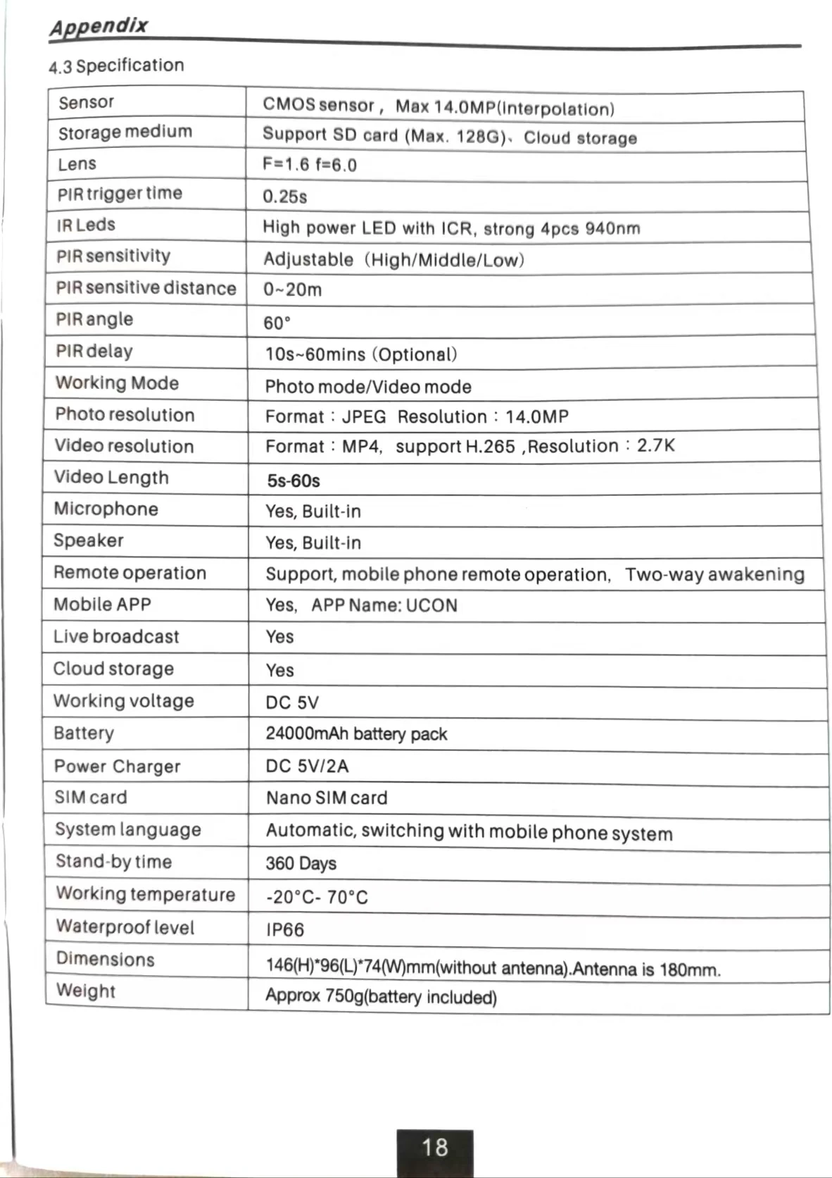 【0.2s Fast Trigger Speed & PIR Detection】The Hunting Cameras Wireless Outdoor 4G features a sensitivity-adjustable PIR sensor and a lightning-fast trigger speed of 0.2 seconds, ensuring precise detection and rapid capture of subjects in photos or videos. Real-time notifications will be sent via the UCon app on your Android/IOS devices so you never miss any key moment. Thanks to built-in microphone and speaker, you can warn off unwelcome guests and animals remotely through the APP.