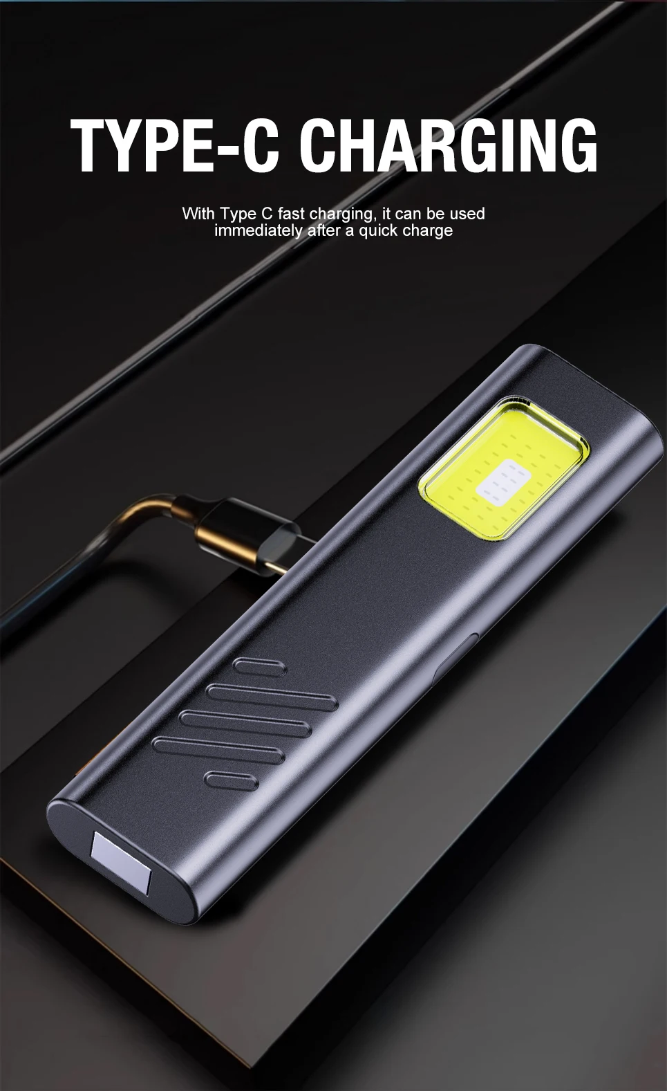 3. Equipped with Type-C fast charging, the flashlight gets powered up quickly without waiting; it delivers up to 6 hours of runtime to keep you lit through long trips or extended tasks. No more dealing with slow charging or dead batteries when you need light most.