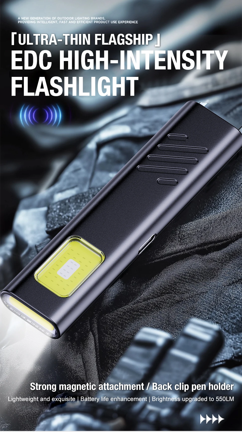 1. This EDC handheld flashlight weighs only 30gultra-light for all-day carry, with a built-in cap clip that lets you attach it to pockets, hats, or bags. Its tail magnet also allows hands-free use by sticking to metal surfaces like toolboxes or car bodies, perfect for outdoor, home repairs, or daily commutes.