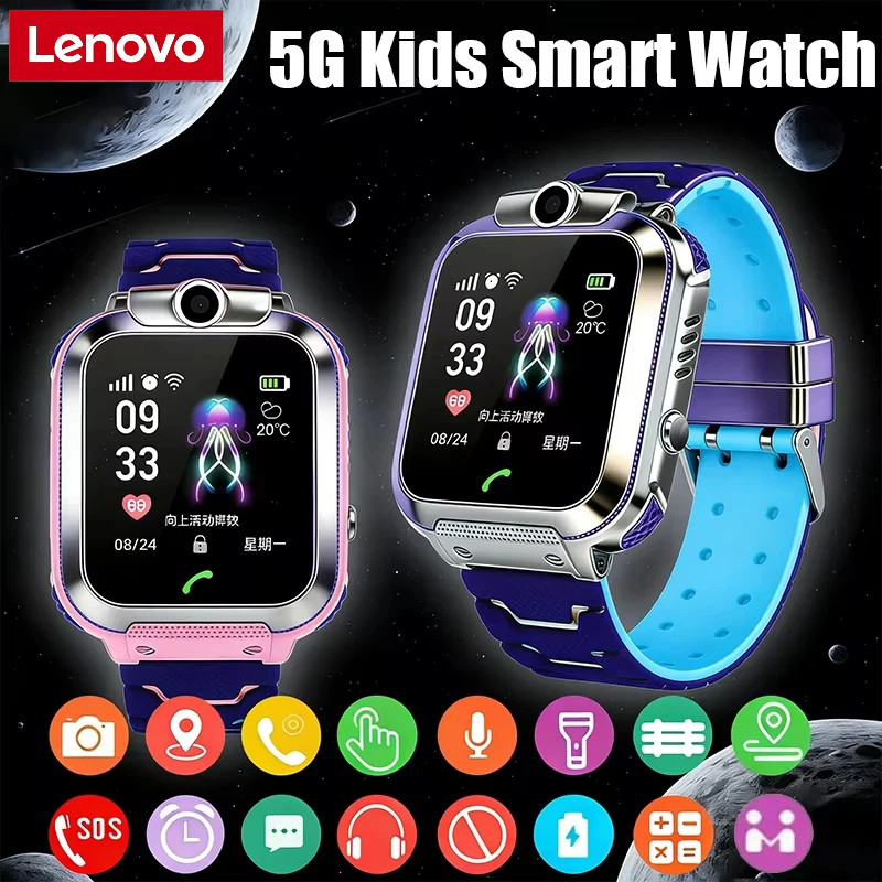 Lenovo 2026 5G Kids Smart Watch Sim Card Call SOS GPS Location Child Smart Watch Camera Waterproof Watch For Boys Girls Present