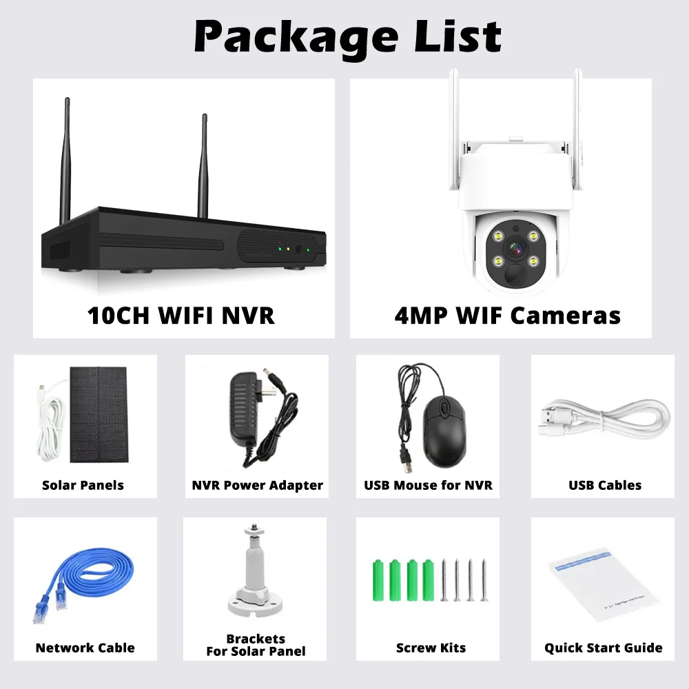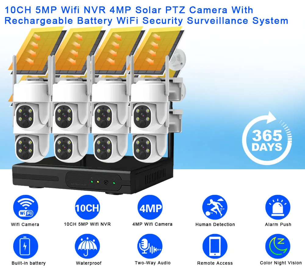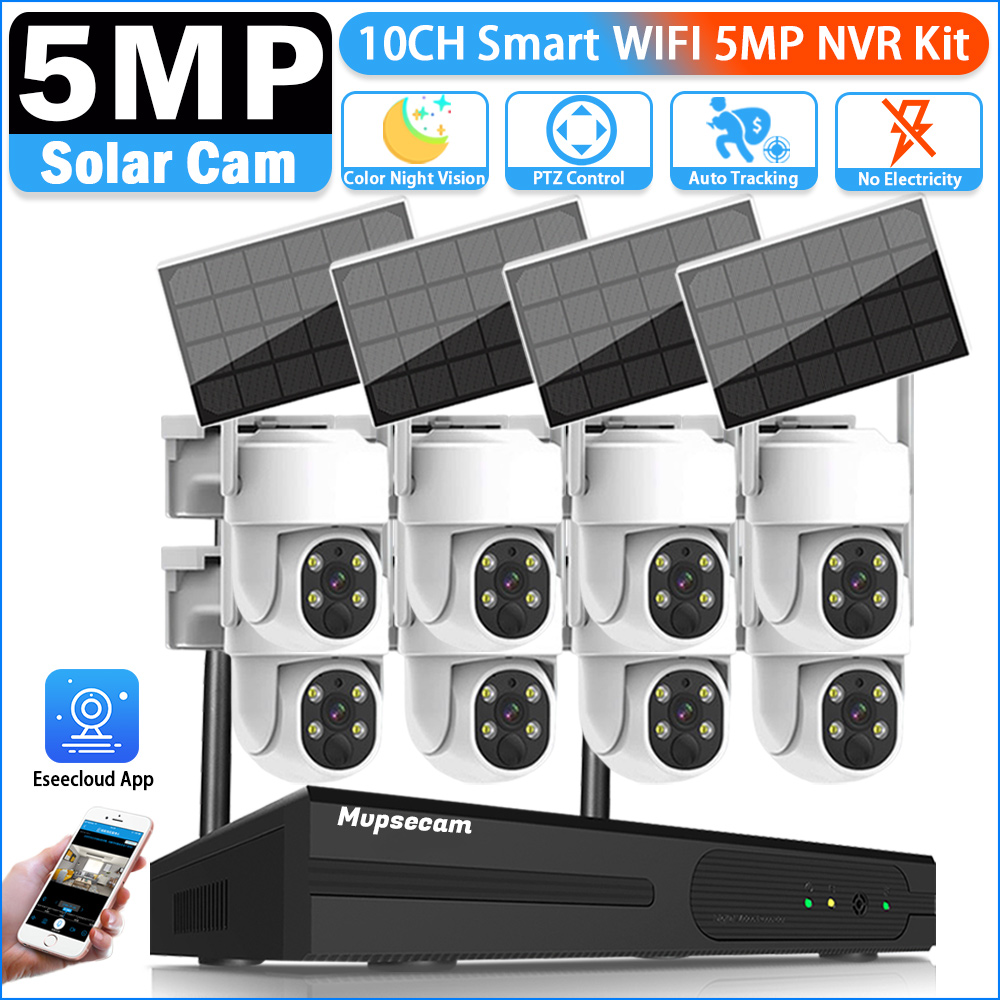 Low-power 5MP WiFi Video Surveillance Camera System 10CH P2P WIFI NVR Set Outdoor Auto Tracking CCTV Solar Camera Security Kit