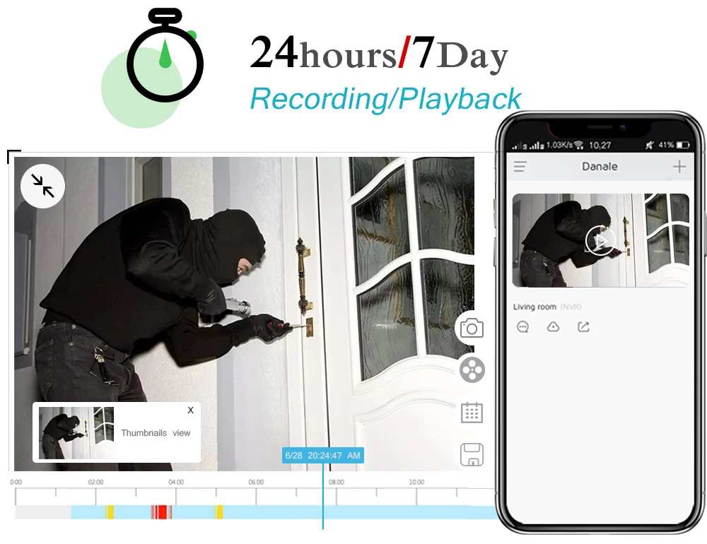 You can easy find the video footage you'd like to playback,Smart playback available with customizable searching area, playback time is greatly reduced by speeding through unimportant videos.