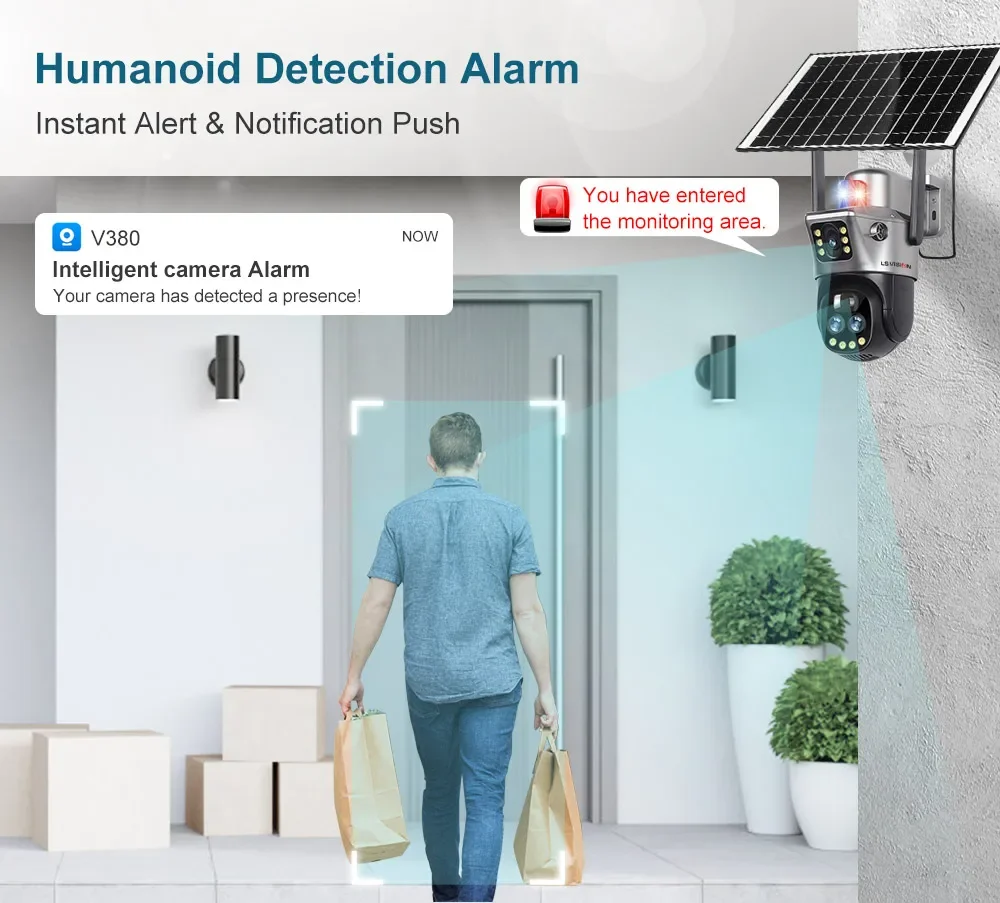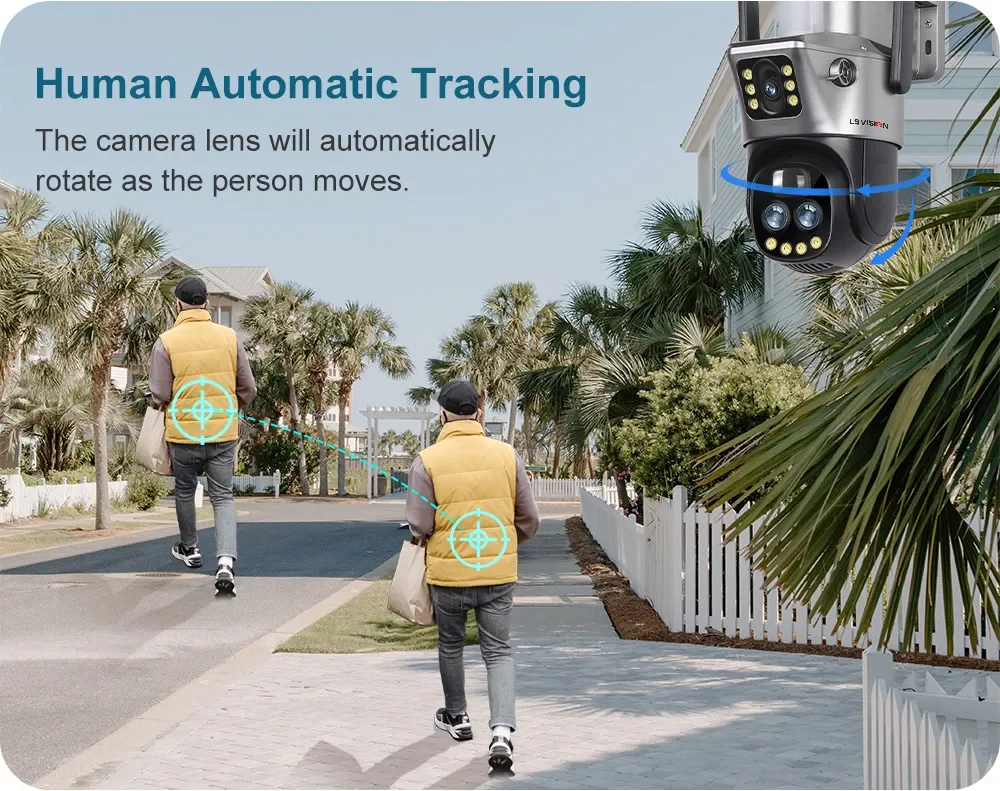 * When a human moves in front of the cctv camera, this solar camera will pan or tilt following the movement. This security camera never let you miss any important moments.