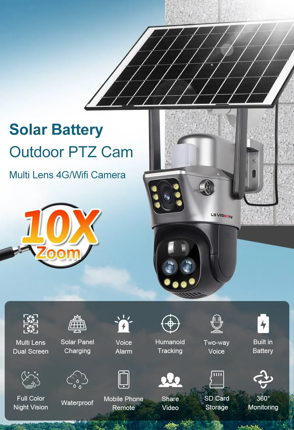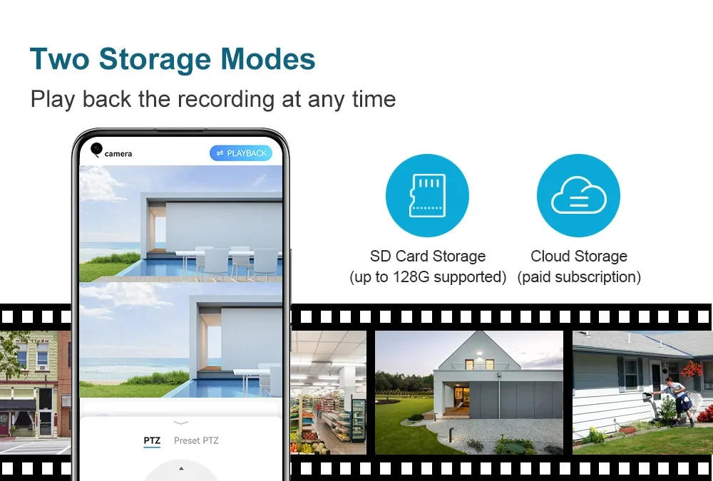 * The solar camera support SD card and cloud storage.