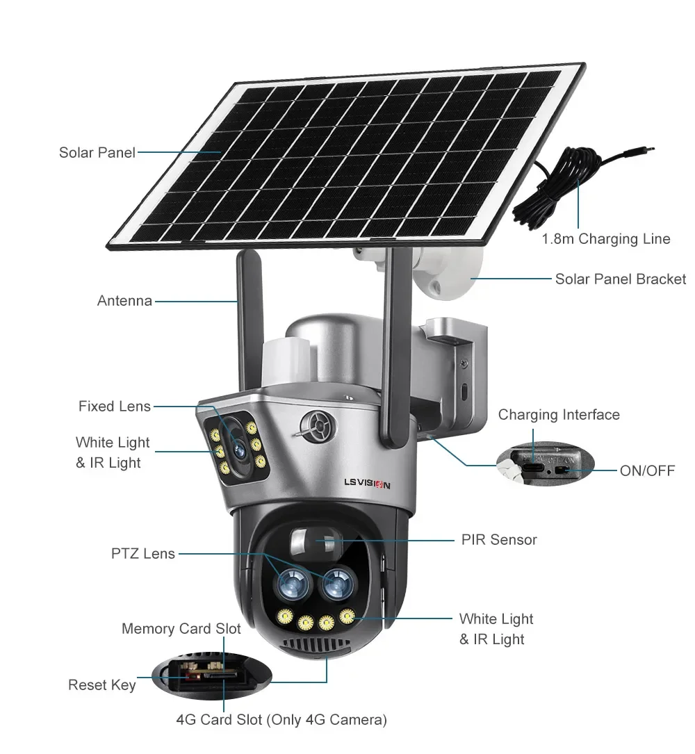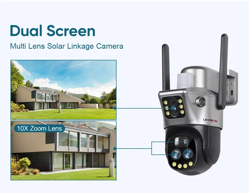 1. 6K dual lens dual-screen 4G/WiFi solar powered battery PTZ camera