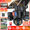 LS VISION AOV 15MP 4G Solar Camera Outdoor Surveillance Camera 12X Optical Zoom Three Lens Three Screen PTZ Security Camera 24/7 Recording Auto Tracking 360° View Two Way Audio HiEasy APP
