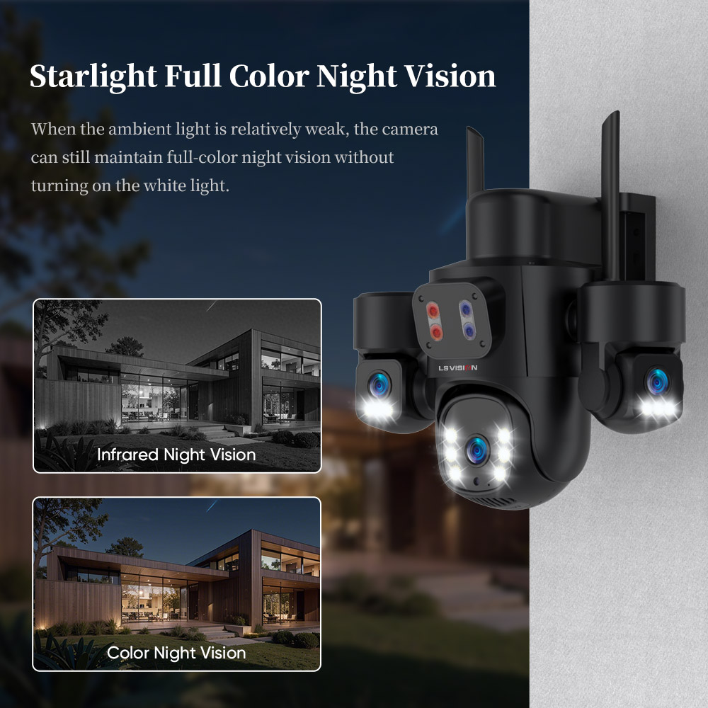* This security camera has 2 modes of night vison: Color and IR Night Vision.