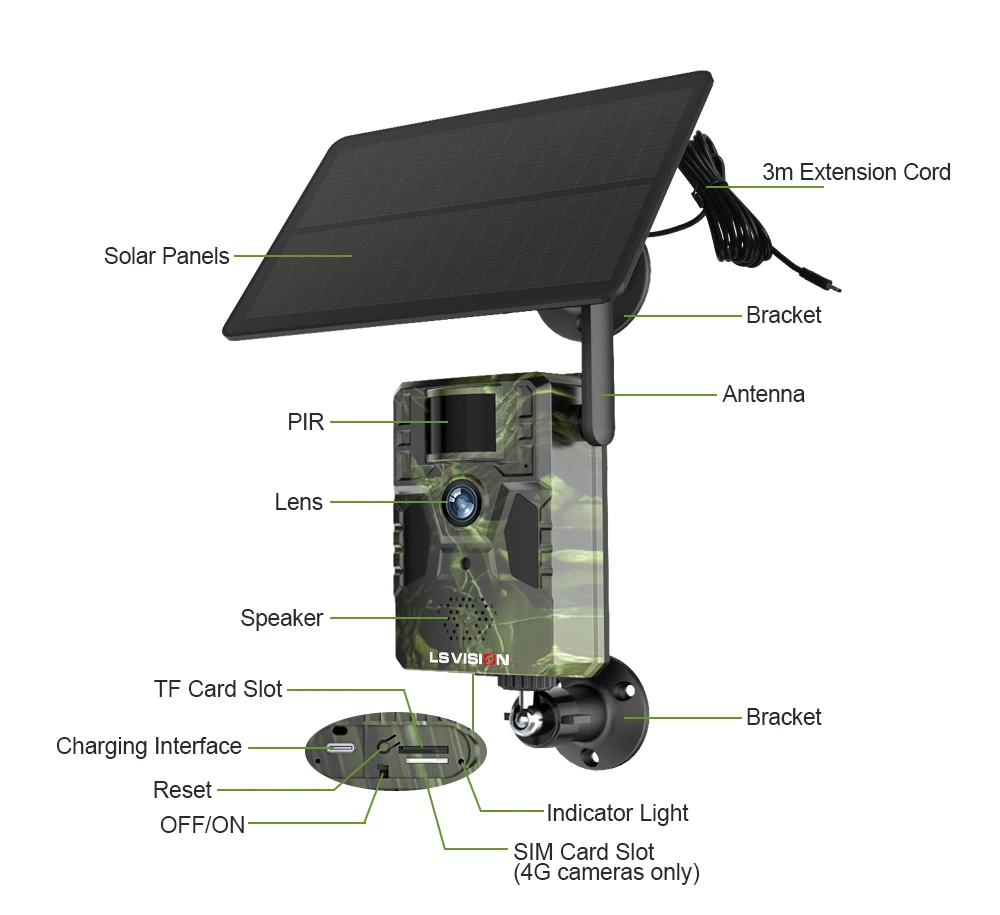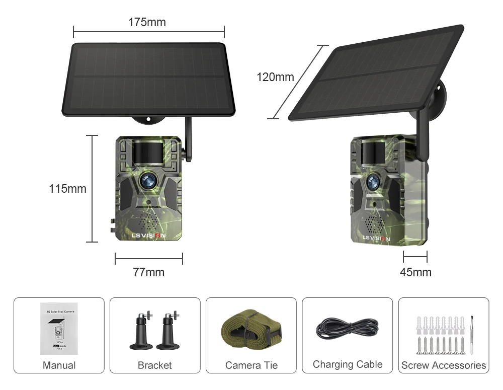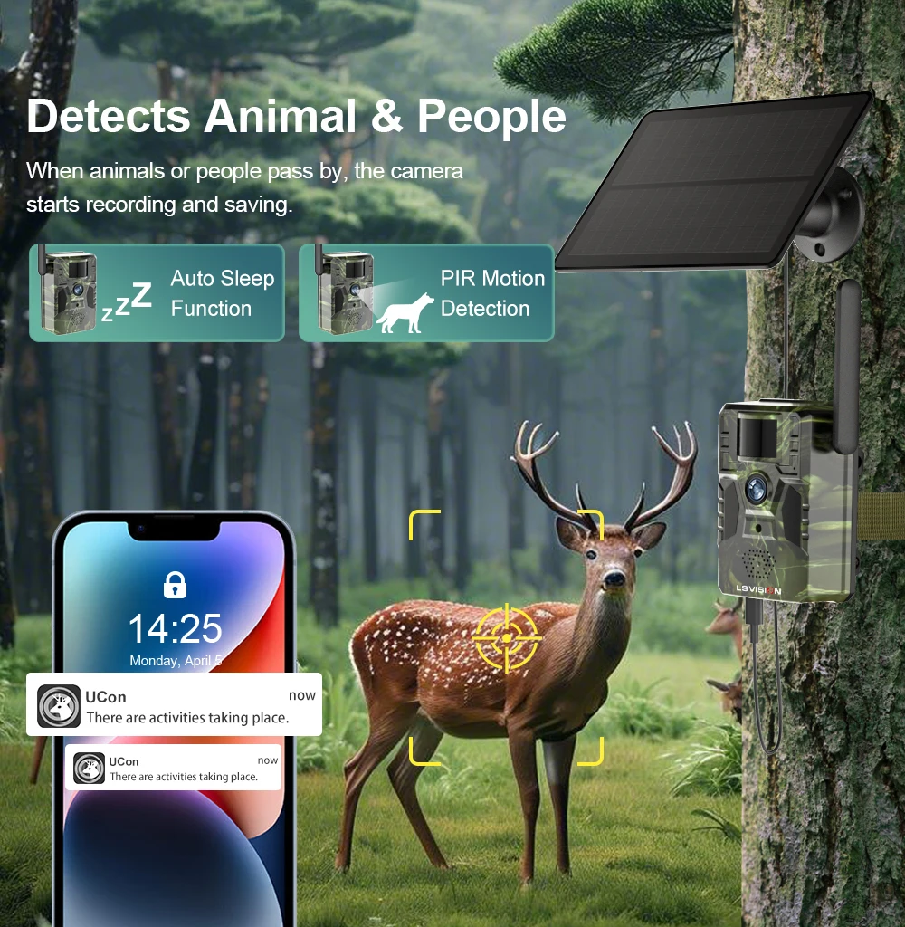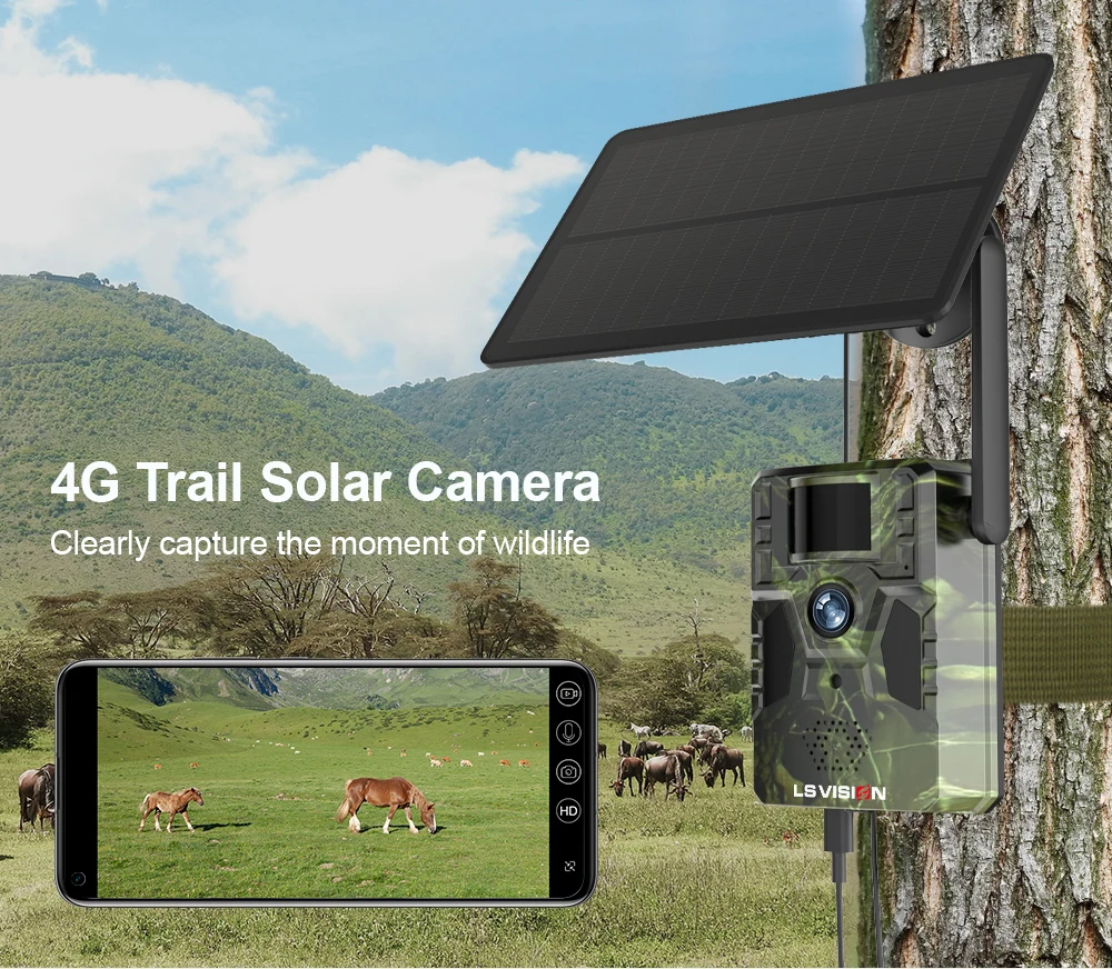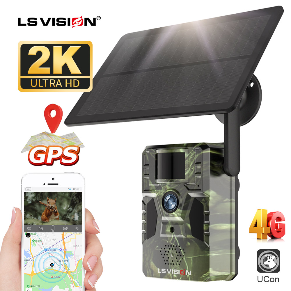 LS VISION 2K 4G Solar Trail Camera 12MP PIR Motion Detection Built in GPS 15M IR NIght Vision IP66 Waterproof Wildlife Cameras