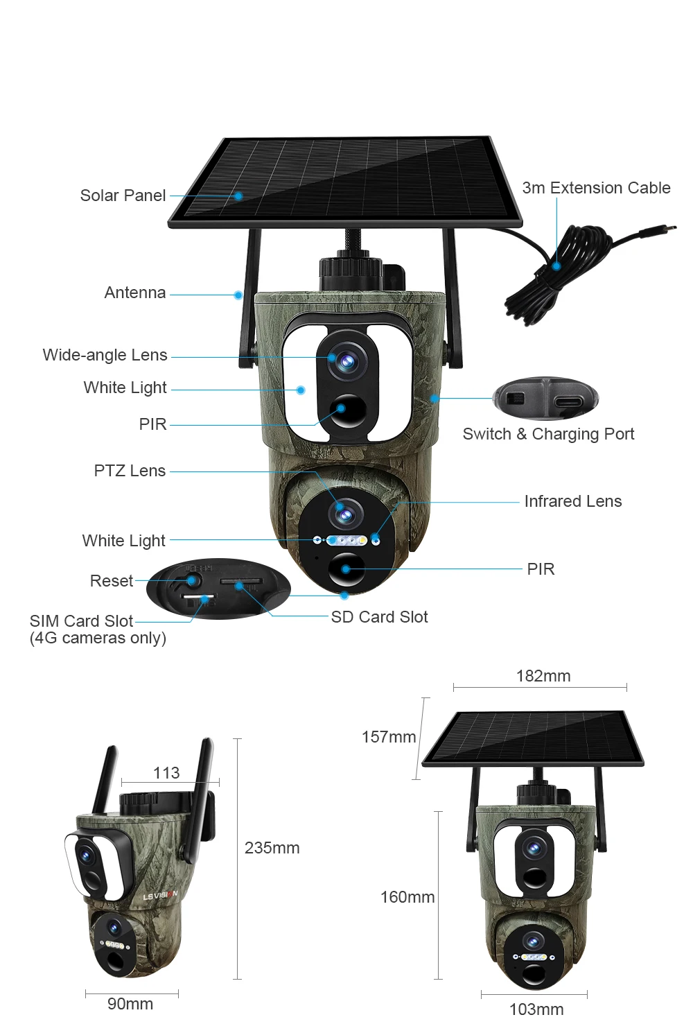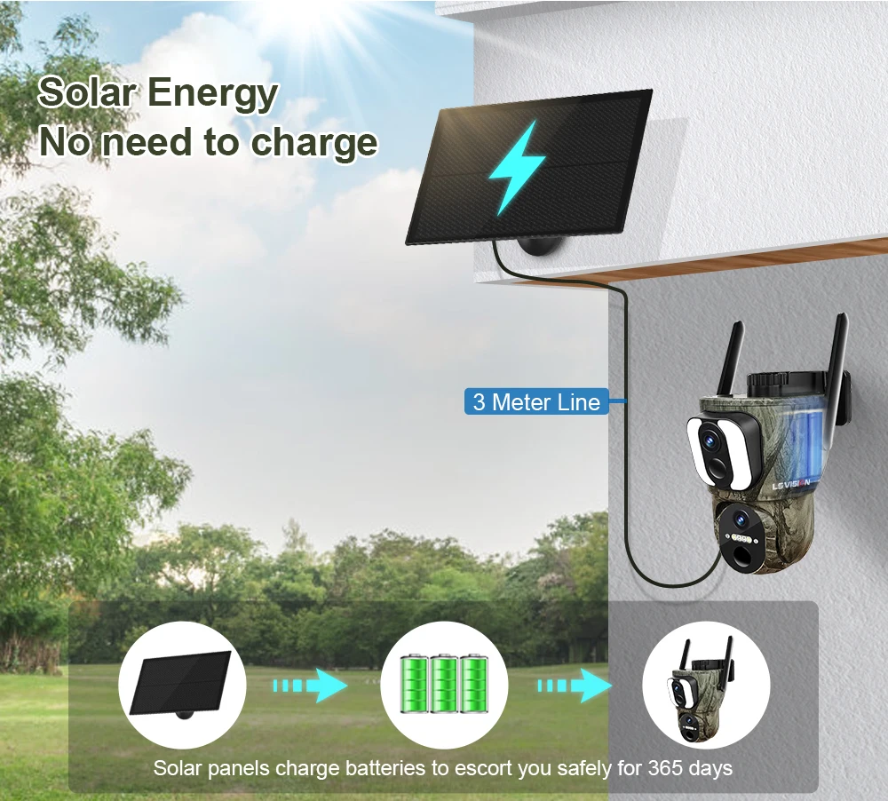Equipped with 15000mAh high-capacity rechargeable battery, can store more electricity, use more durable, thus ensuring that the camera will continue to work even at night when there is no light and on rainy days