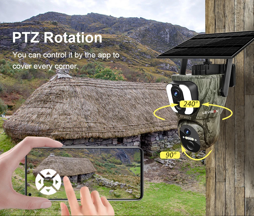 Allows a panoramic view of your yard or private domain with 355° pan and 100° tilt. As parents, we sometimes inevitably let our children play alone on the patio or by the pool. We can control the outdoor wireless camera indoors through the camera mobile app to observe the child's surrounding in all directions and avoid accidents.