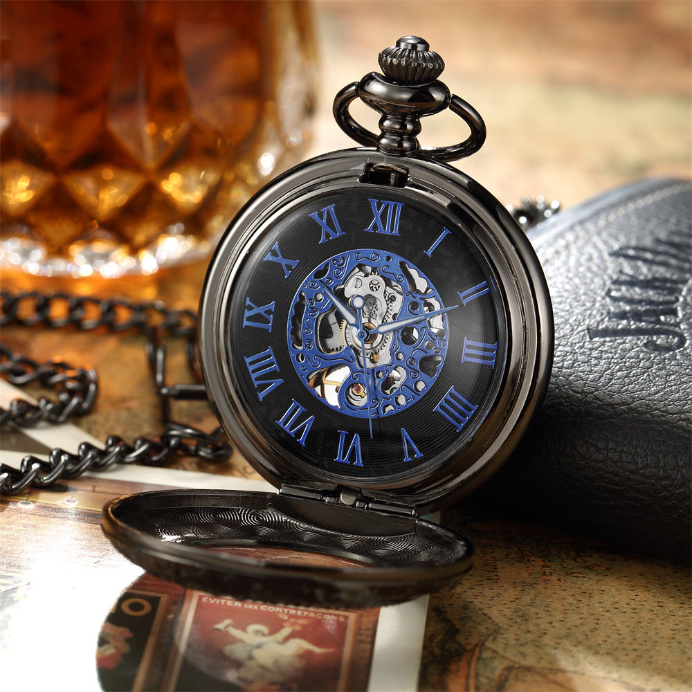Luxury Retro Golden Hollow Skeleton Mechanical Pocket Watch Mens Fob Chain Steel Exquisite Sculpture Women Men Pocket Wath Gifs