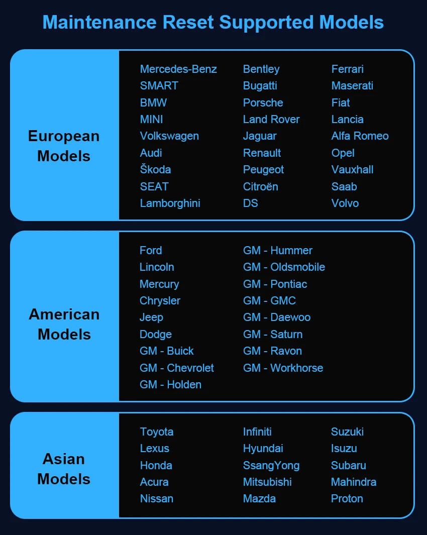 ● Reset maintenance light (33 models on the product page)