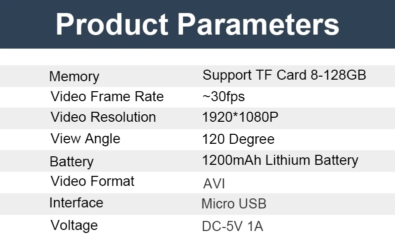 1.Storage:Support up to 128GB TF card(Memory card is not included)