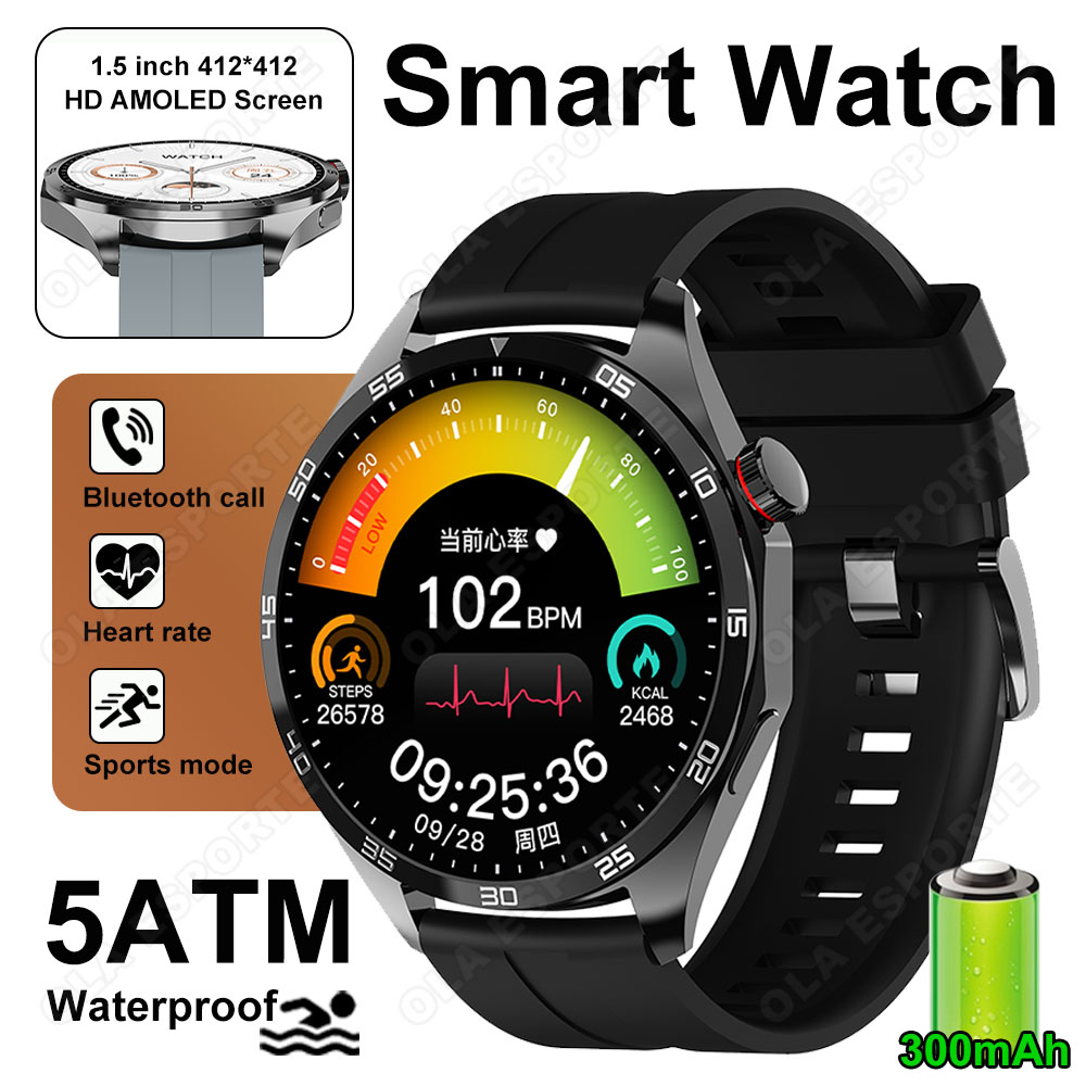 Men Smart Watch 1.5″ HD AMOLED Screen Bluetooth Call GPS Tracker Smartwatch Multiple Sports Modes Pedometer Health Monitoring