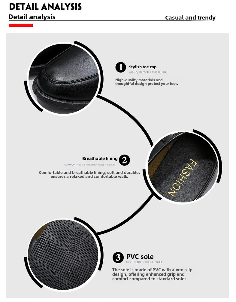 Crafted with high-quality PU and PVC materials, these shoes promise durability and longevity. They are designed to withstand daily wear and tear.