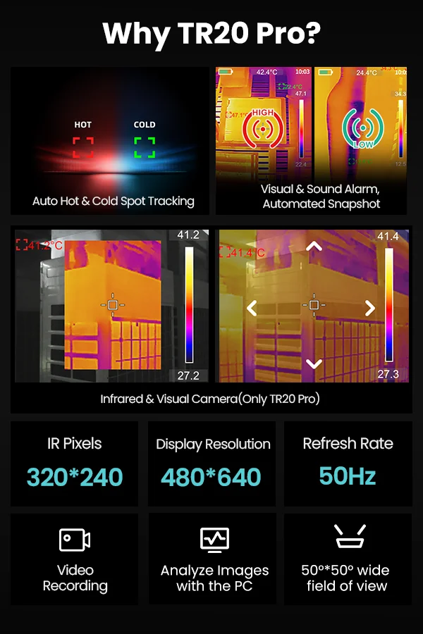 Mileseey TR 20 TR 20 Pro Thermal Camera 320×240 Infrared resolution, Thermal Imager For PCB repair and water leak detector wall