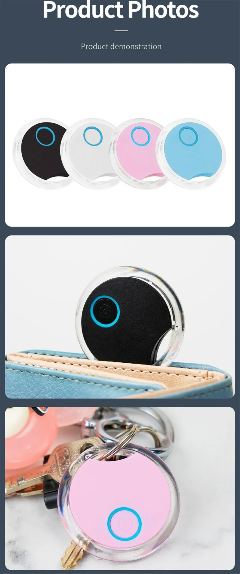 1. Property search function: Bind the anti loss device with valuable items. When the device is connected to the mobile app via Bluetooth, use the app's search function to make the anti loss device sound and locate the item.