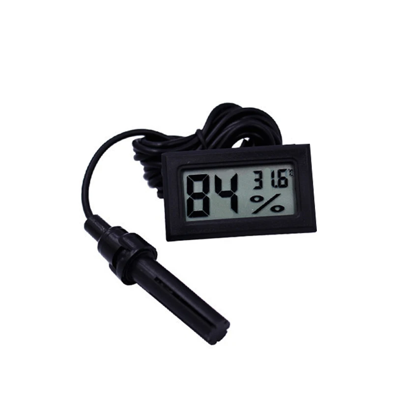 This hygrometer has a probe, which can test some places humidity exactly. It was used widelyPackage included: