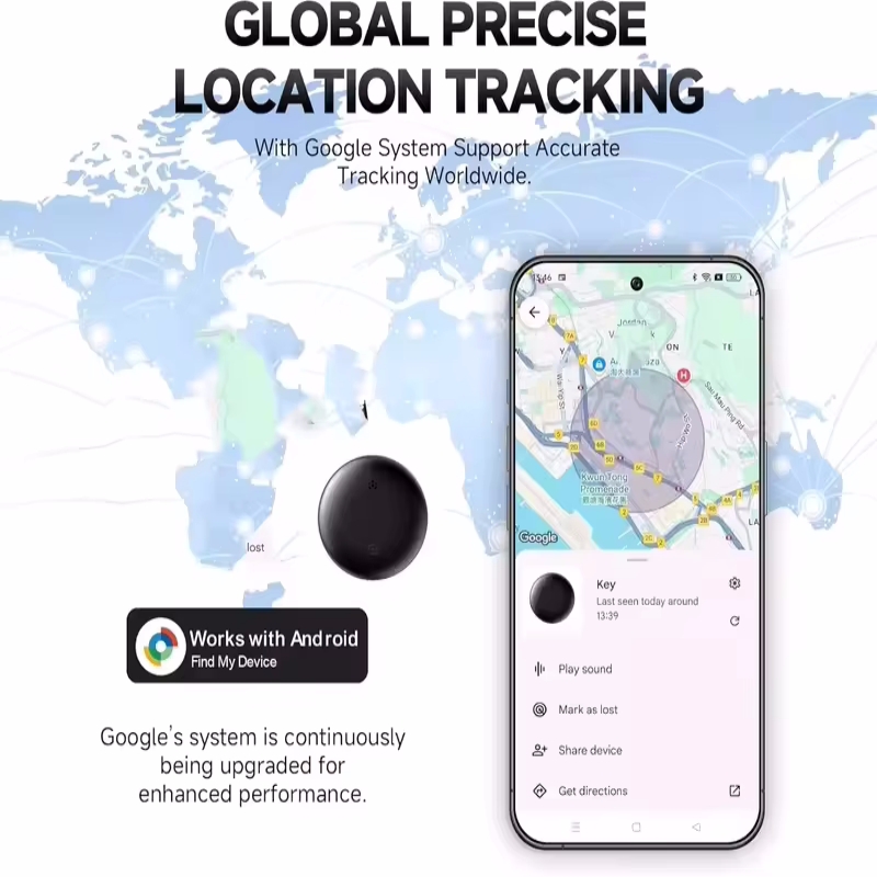 Global tracking, quick location updates: When your item leaves Bluetooth range, as long as there is an Android device near the Wireless Tag, you can view its location on Google Maps through the Google Find My Device app. You can also share your location with your loved ones or family, making you feel more at ease.