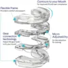Snoring can cause obstructive sleep apnea repeatedly resulting in the brain and blood oxygen deficit, which is the result of the airway blocking. Airway blocking may be caused by large tonsils, a long soft palate or uvula, excessive flabby tissue, nasal congestion, cartilage deformities in the nose or nasal structure or the tongue muscle has relaxed too much during sleep. However, this anti-snoring mouth device effectively closes the mouth and prevents the tongue from falling back to the back of the throat, which keeps the airway open and reduces throat vibrations, gradually reducing or eliminating snoring.