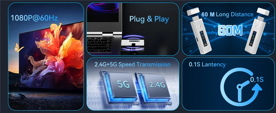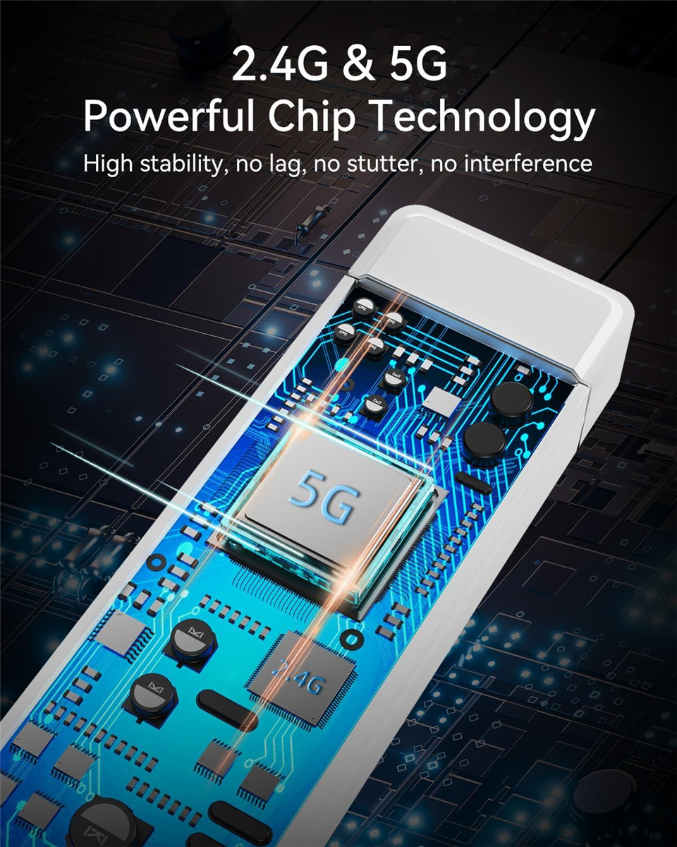 • 【196FT/60m Wireless Transmission】With a range of up to 196 feet, ensuring uninterrupted connectivity (latency less than 0.1s, almost real-time). Utilizing a 2.4G/5G transmission protocol for strong anti-interference and high stability signal