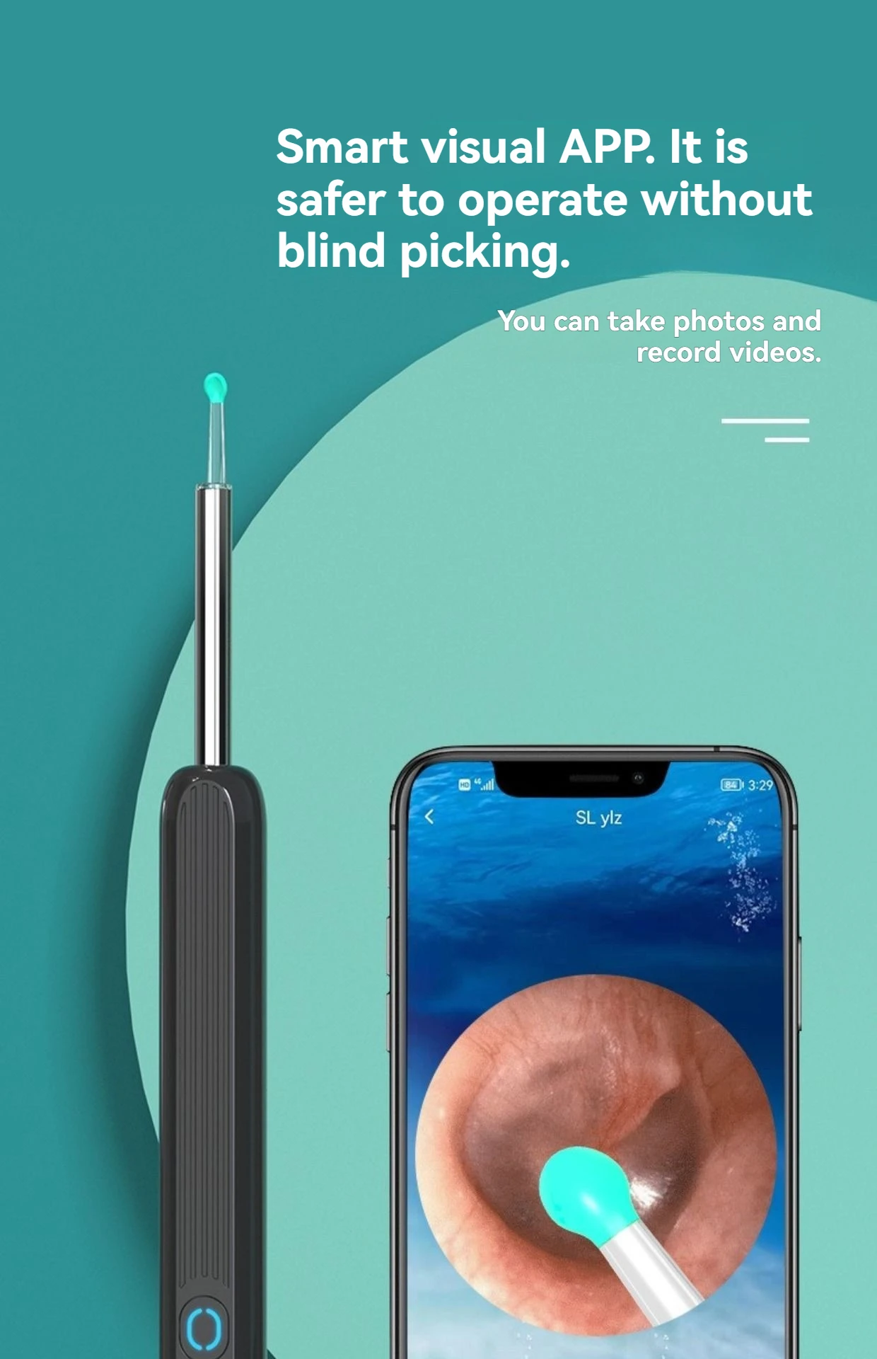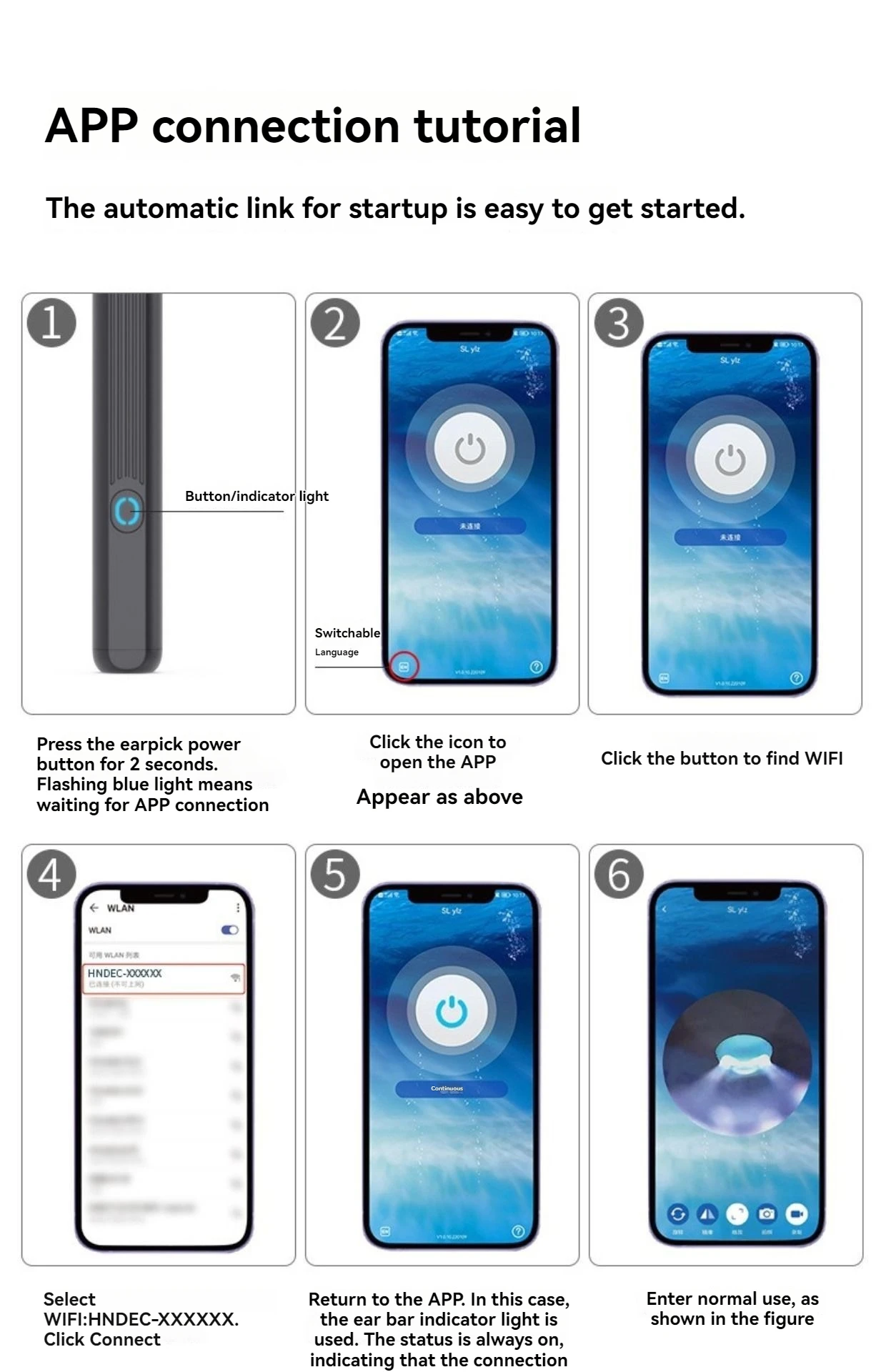NE3 Ear Cleaner High Precision Ear Wax Removal Tool with Camera LED Light Wireless Otoscope Smart Ear Cleaning Kit 6 LED Lights