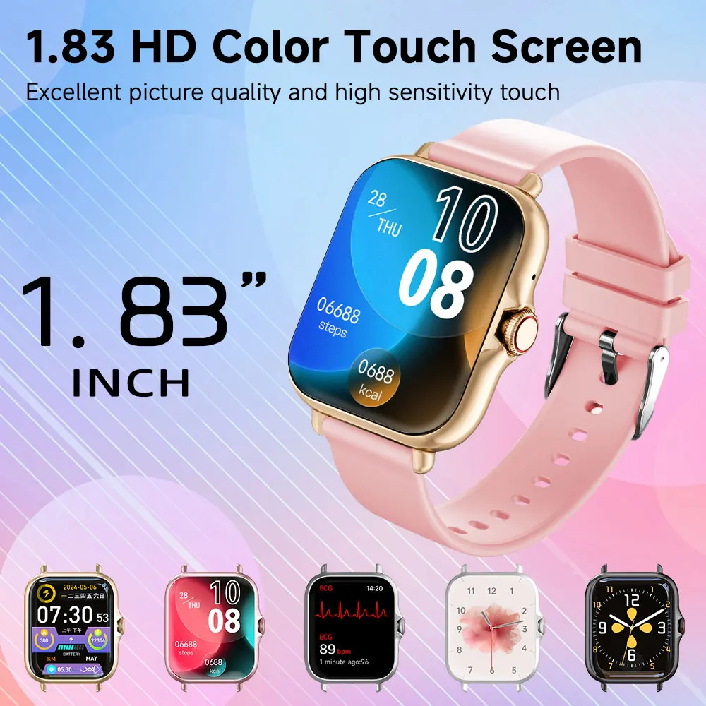 • High-quality display:The Smartwatch features a 1.83-inch screen, offering a vibrant and clear display for an enhanced user experience.