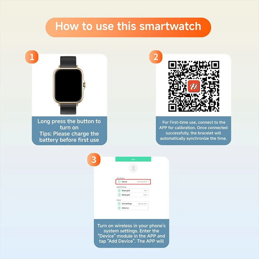 4.Before using, pleases can the QR code on the manual to download the APP and use the APP to connect with the watch.