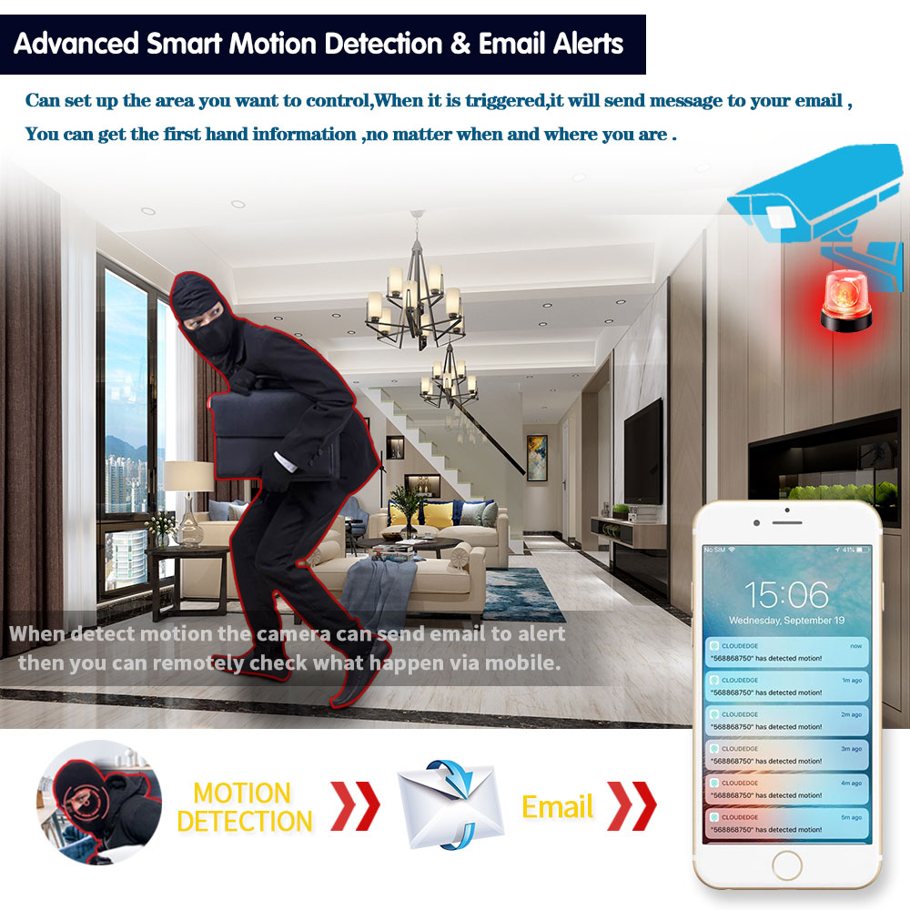 7.Support Motion Detection, Email Alerts, Video Playback;