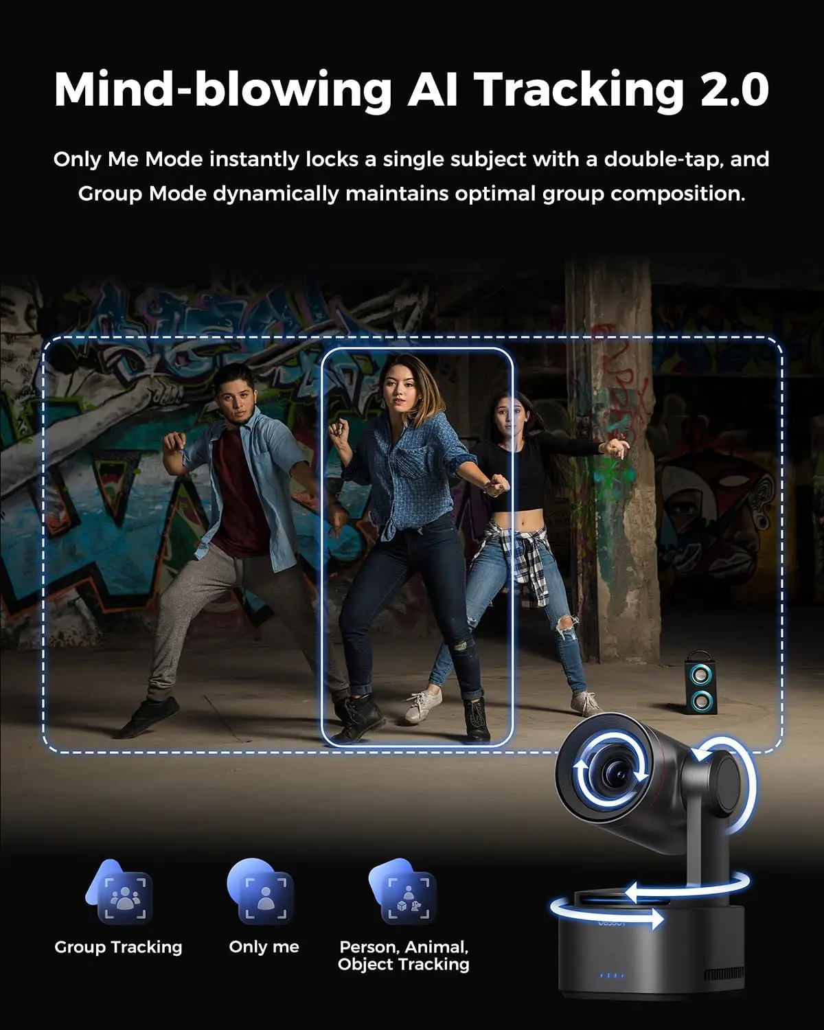 Improved intelligent tracking algorithm seamlessly keeps the subject in frame, enabling hands-free operation to concentrate on capturing outstanding video. The new “Only Me” feature ensures unwavering focus on your selected subject. For group scenarios, our enhanced AI algorithm delivers precise Group Tracking.