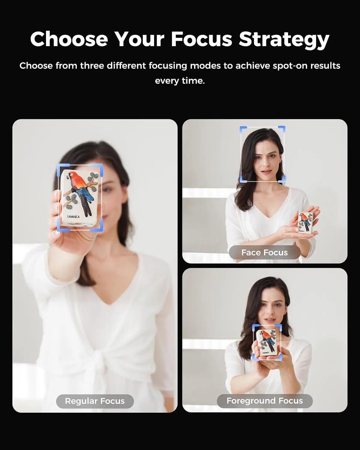 The enhanced Regular Focus and Face Focus modes provide improved accuracy and efficiency. The new Foreground Focus automatically prioritizes subjects closest to the camera, ensuring your intended target stays sharp and in focus throughout your shoot.