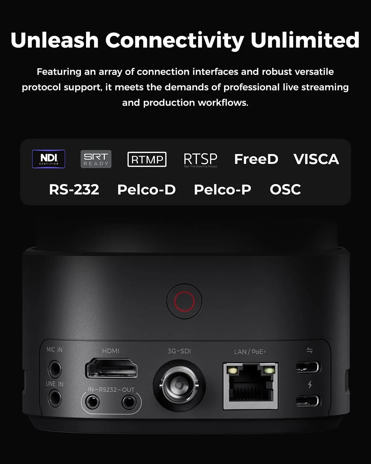 The Tail 2 includes several built-in interfaces, allowing it to have abundant compatibility. You can output its video signal directly to a screen or integrate it seamlessly into your current live stream workflow.