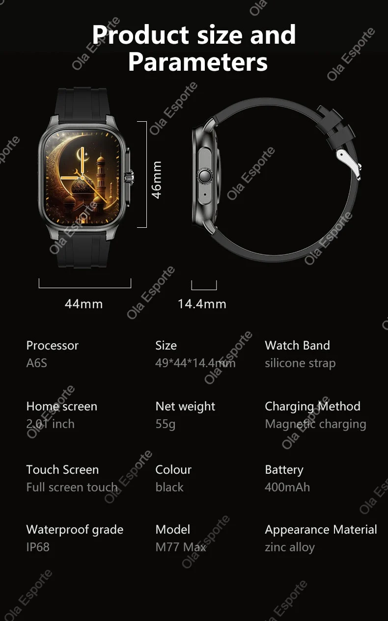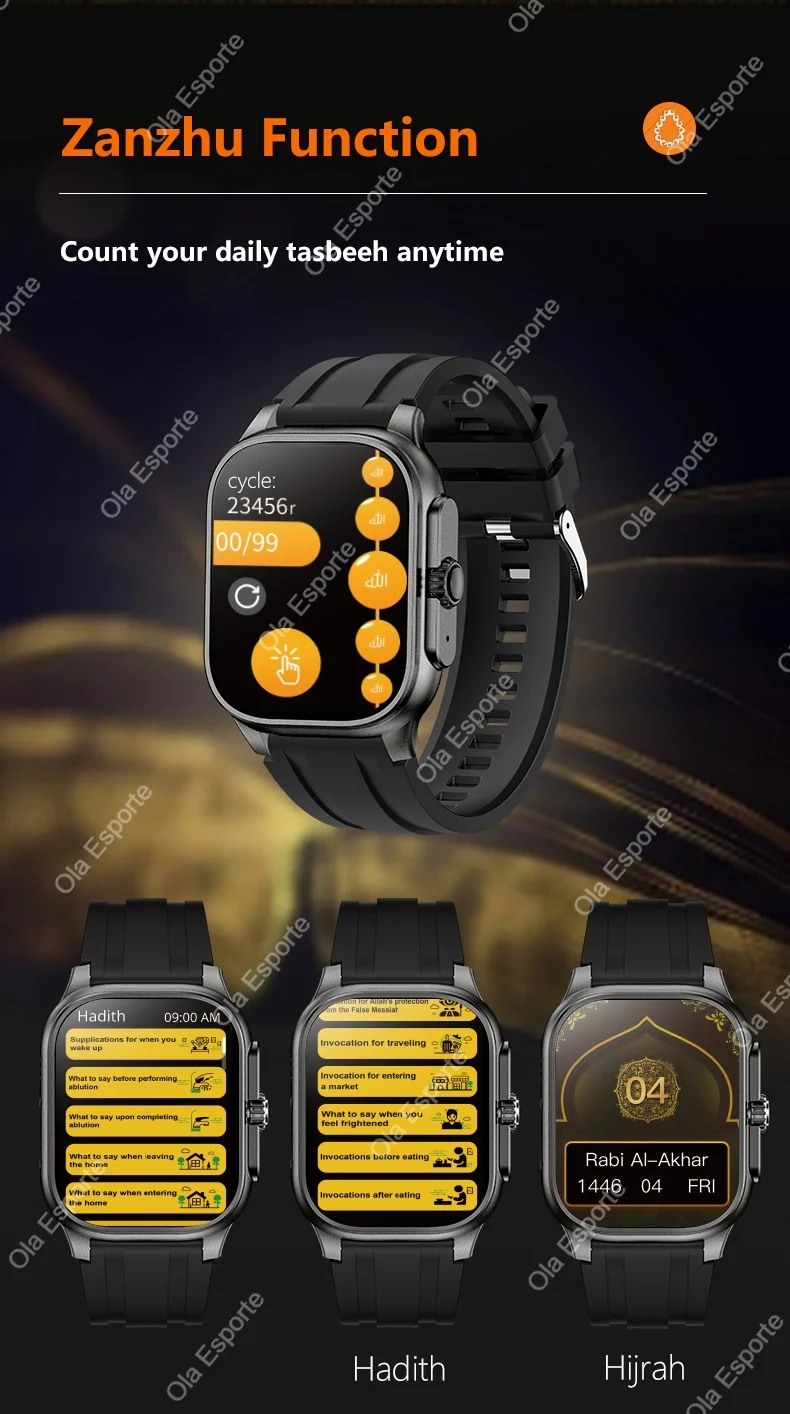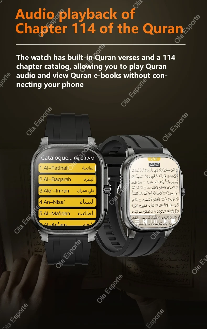 New Quran Tasbih Smartwatch For Muslim 4GB Memory 400mAh Battery 114 Quran Hadith Audio Watches Bluetooth Call 2.01″ Smart Watch