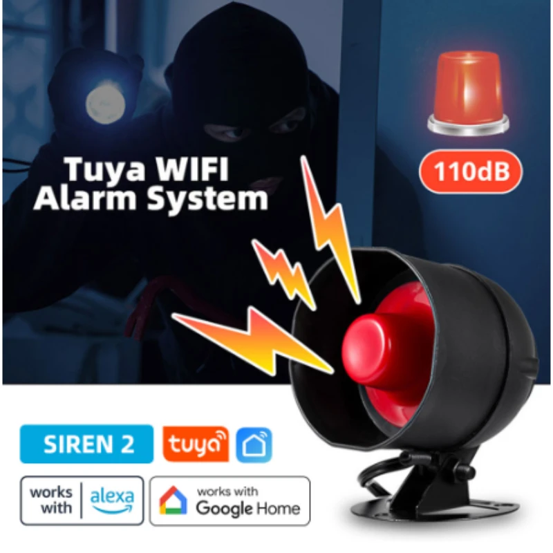 Tuya WiFi Siren Alarm System Wireless Loud Sound Alert Siren Kit Smart Life Siren Compatible With Alexa Google For Home Security
