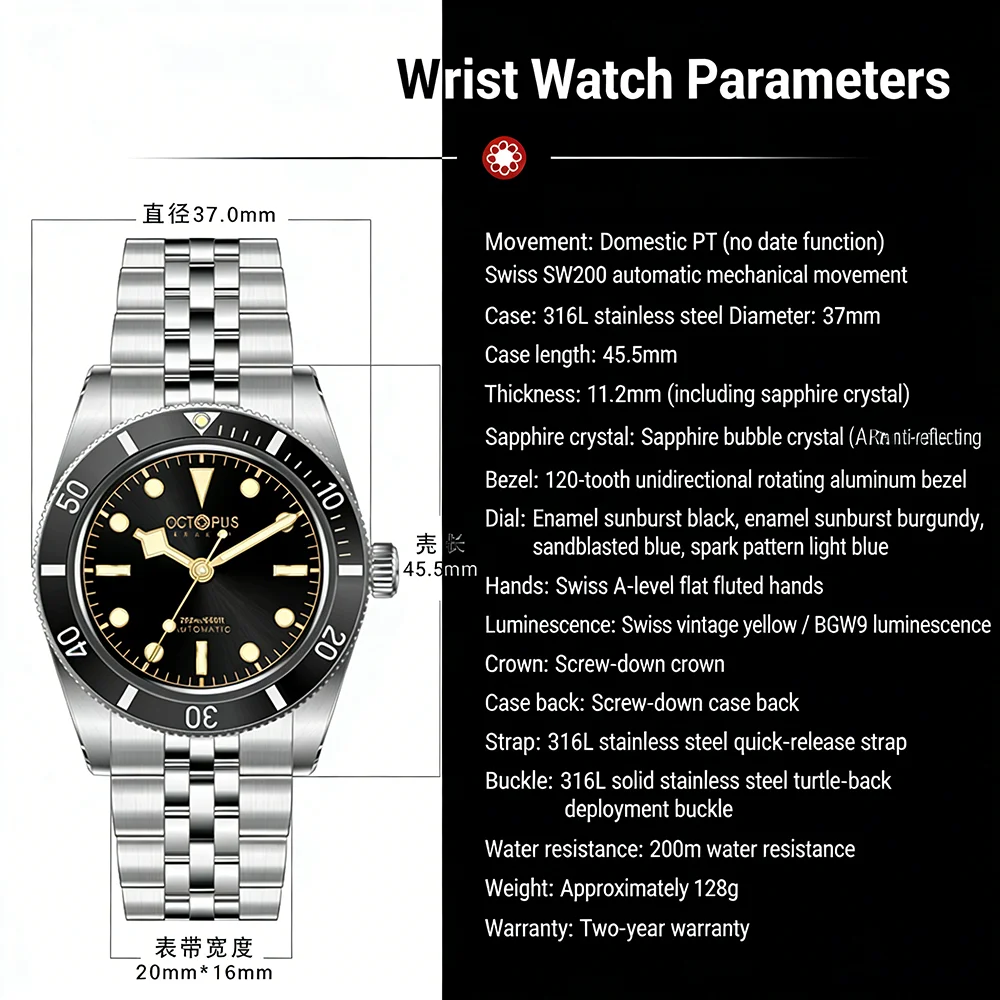 Octopus Kraken New Mechanical Watch PT5000/SW200 Automatic Movement Luminous Luxury Watches 200m Waterproof Dive Watch OCT-0025