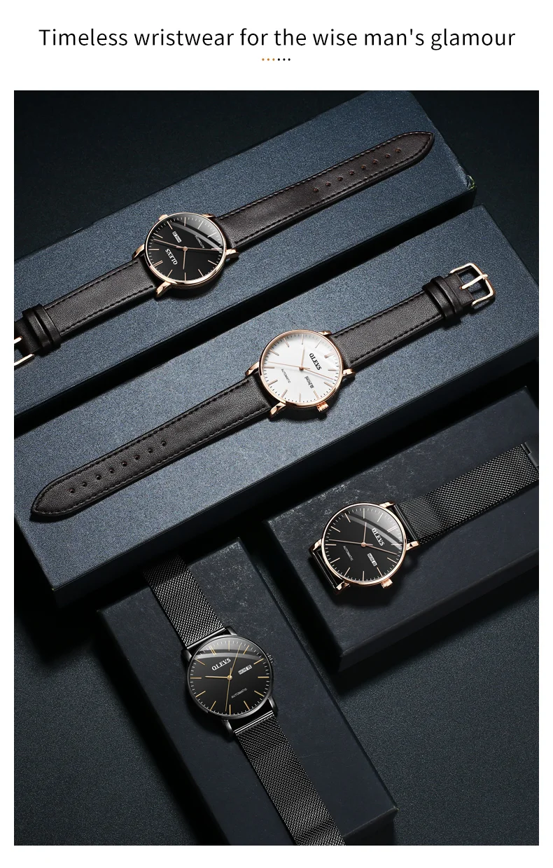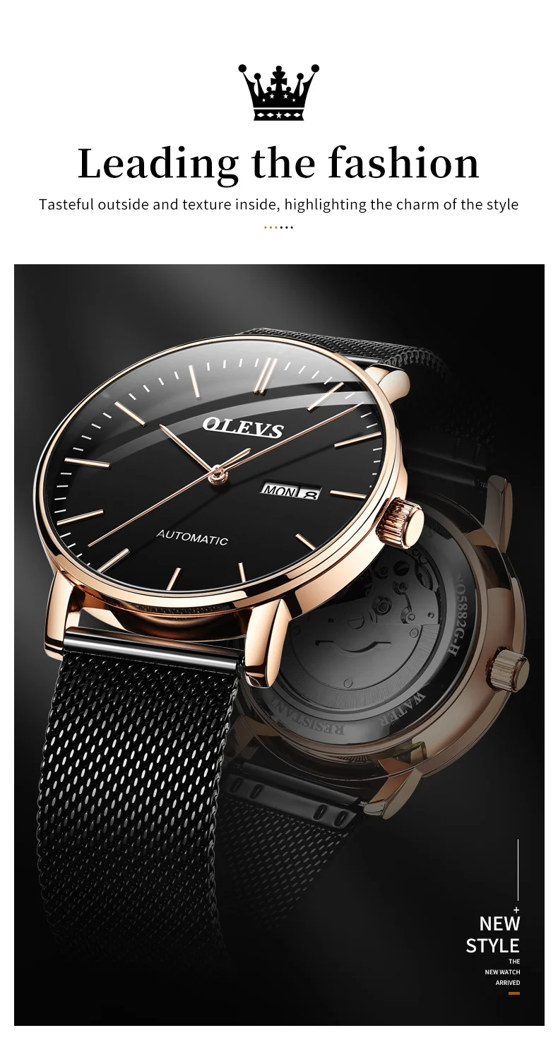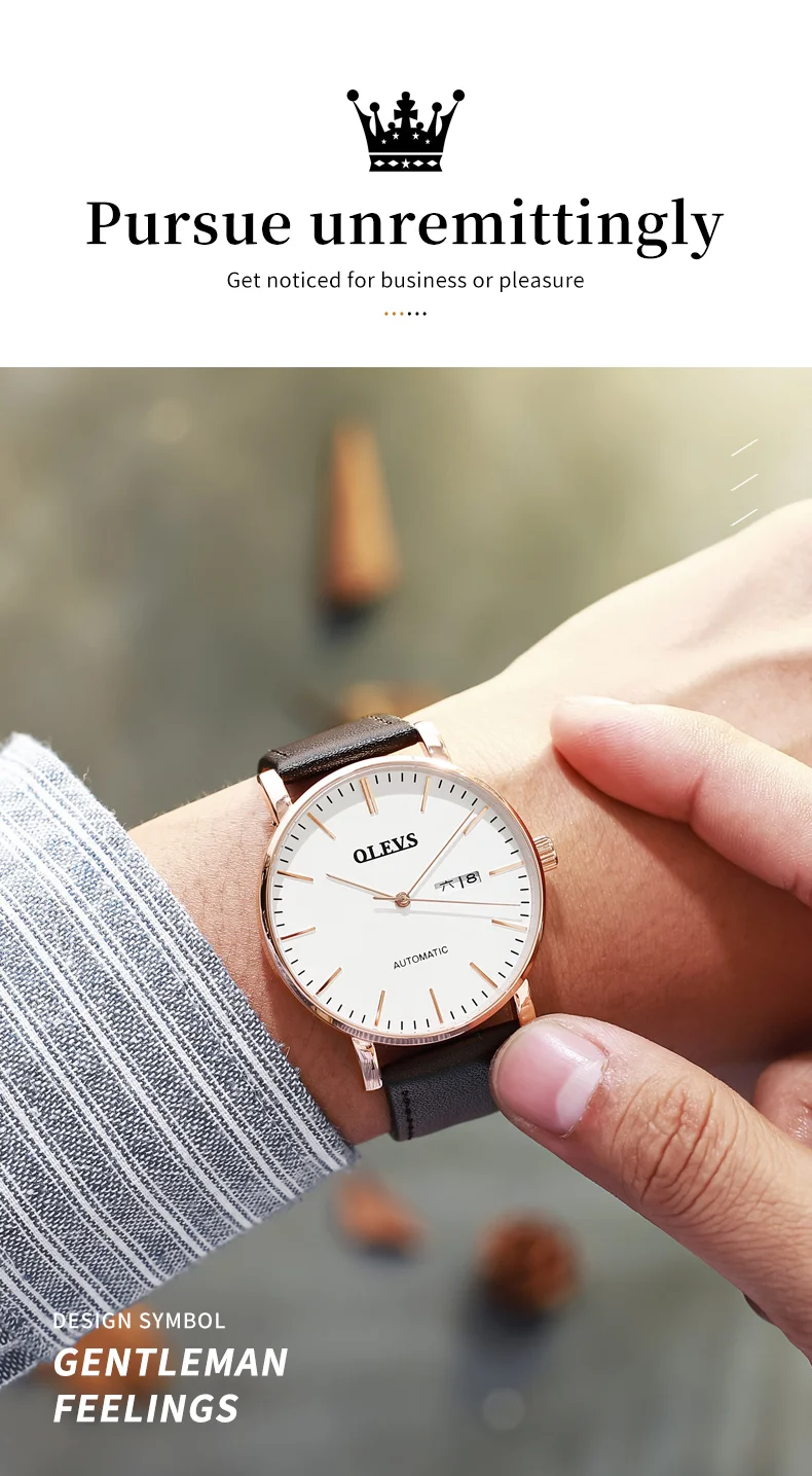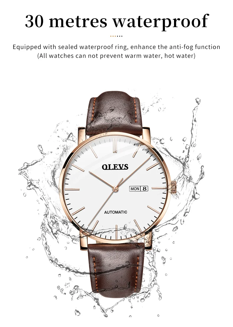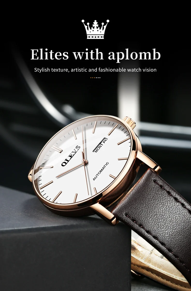 OLEVS 5882 Mens Watch Luxury Fashion Brand Automatic Mechanical Dual Calendar Watch Waterproof Leather Strap Watches For Men