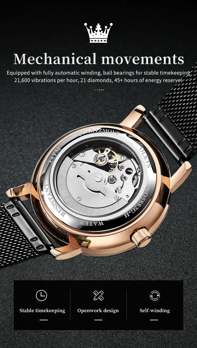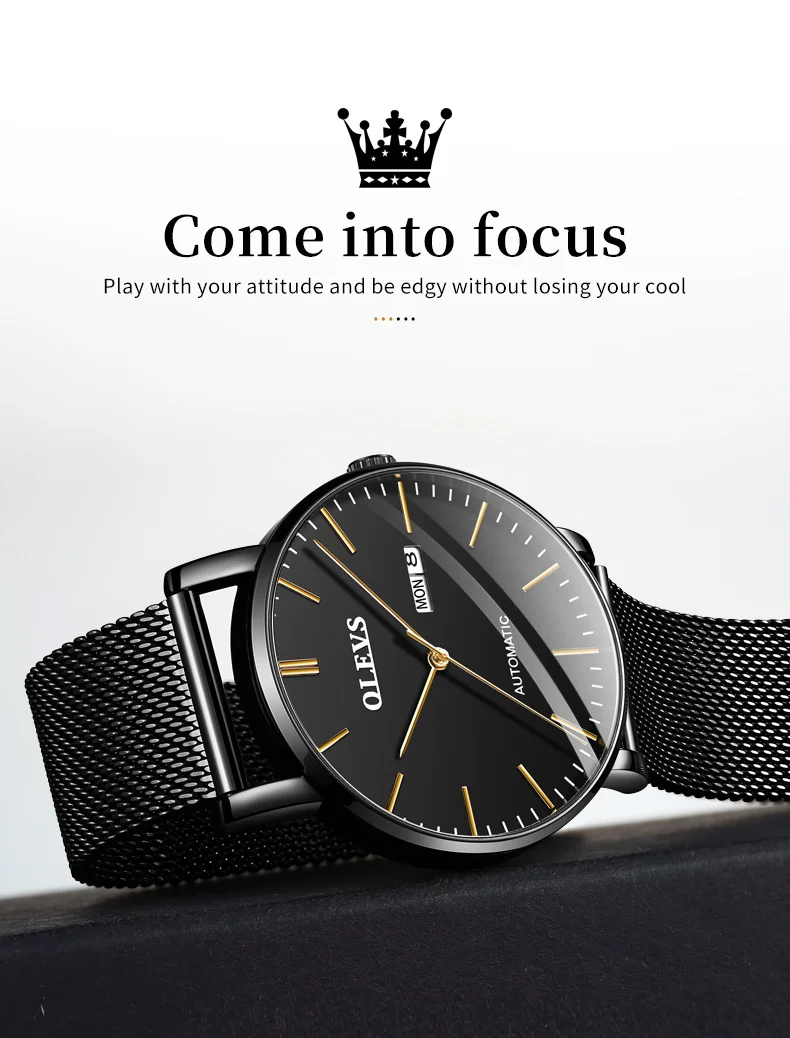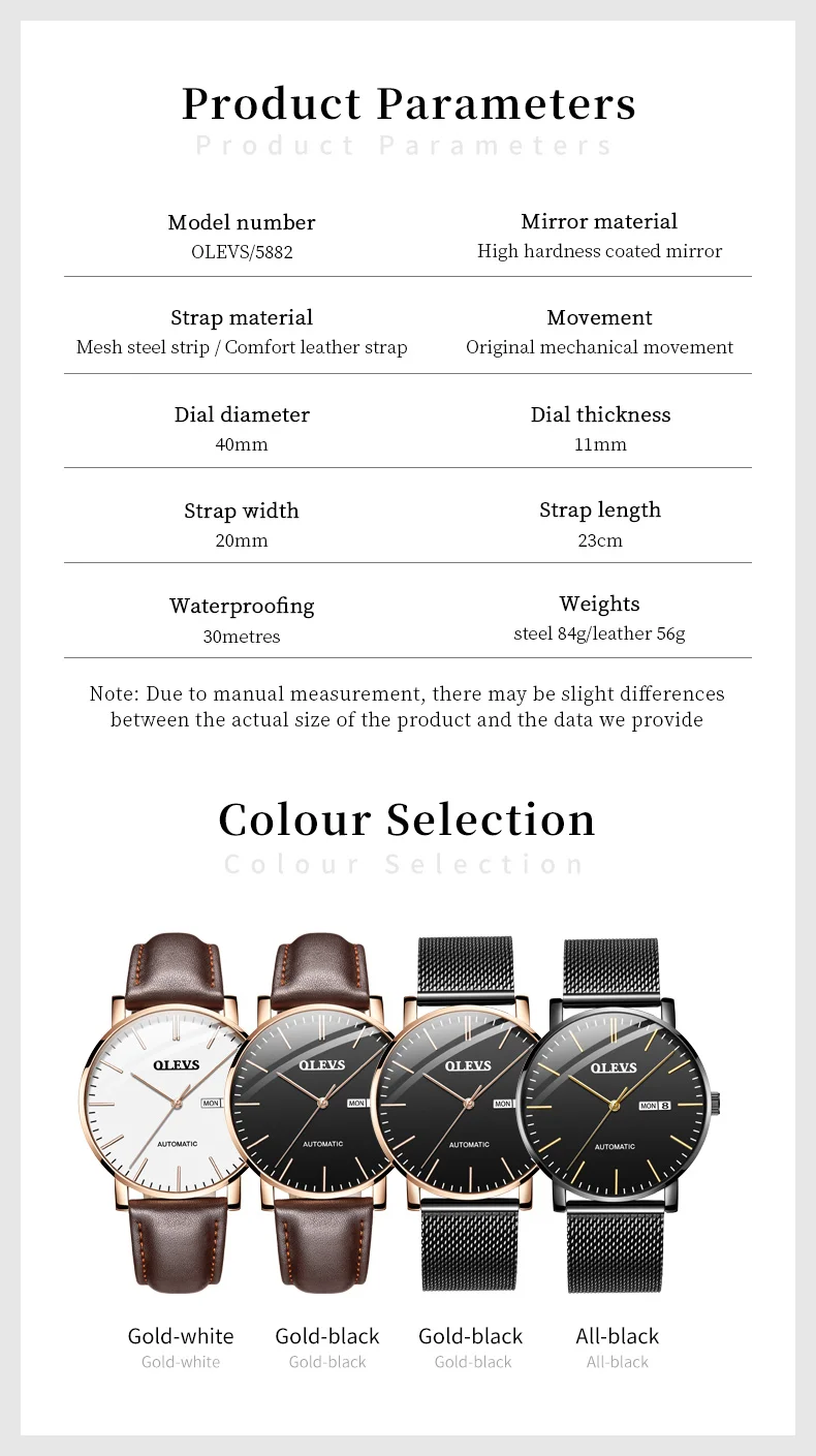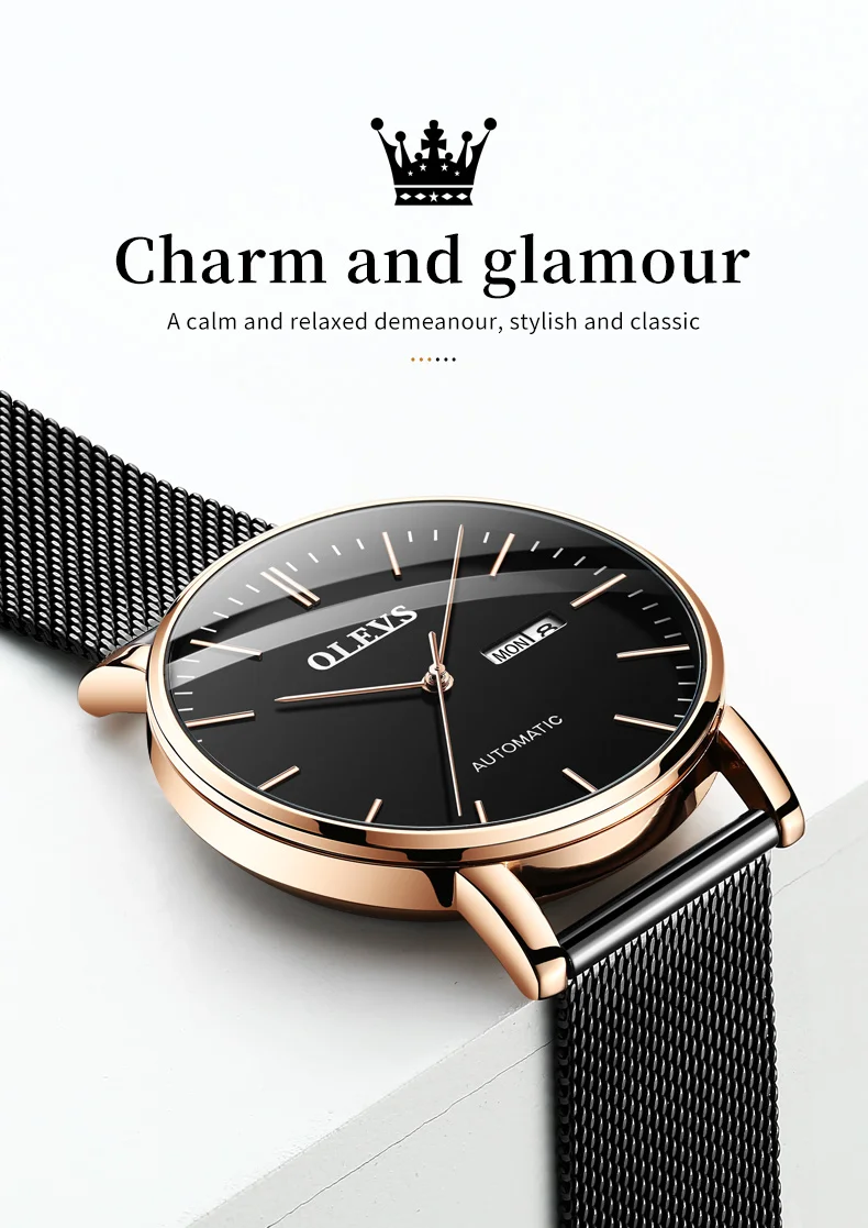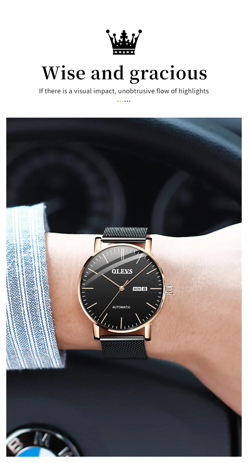 OLEVS 5882 Mens Watch Luxury Fashion Brand Automatic Mechanical Dual Calendar Watch Waterproof Leather Strap Watches For Men